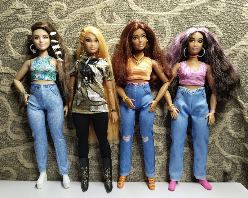 Бедные барби должны напрячься, когда их безумная хозяйка, причесав куколок, внезапно начинает сравнивать их скинтоны. Это недобрый знак! Вот недавно, выяснилось, что для Келси Натуралисты ближе всего по скинтону пышка Фанси. Скинтон у Келси сложный по оттенку. Не лайт браун и не ла тан. У Фанси тоже скин ни туды ни сюды. Но между собой почти не разнотонят. 5 |