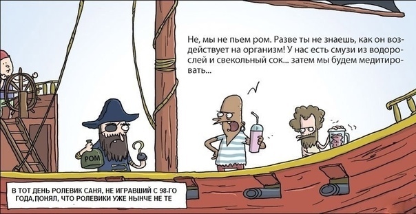 ![]() Когда я увидела эту картинку, сразу вспомнила, как старый ролевик, мой давний друг, попал на игру в прошлом году в отряд из людей младше его на 15-20 лет. Собственно затащила его туда его племянница. Вот потом он рассказывал о этой игре, как этот пират ^^ 27 сентября 2018
