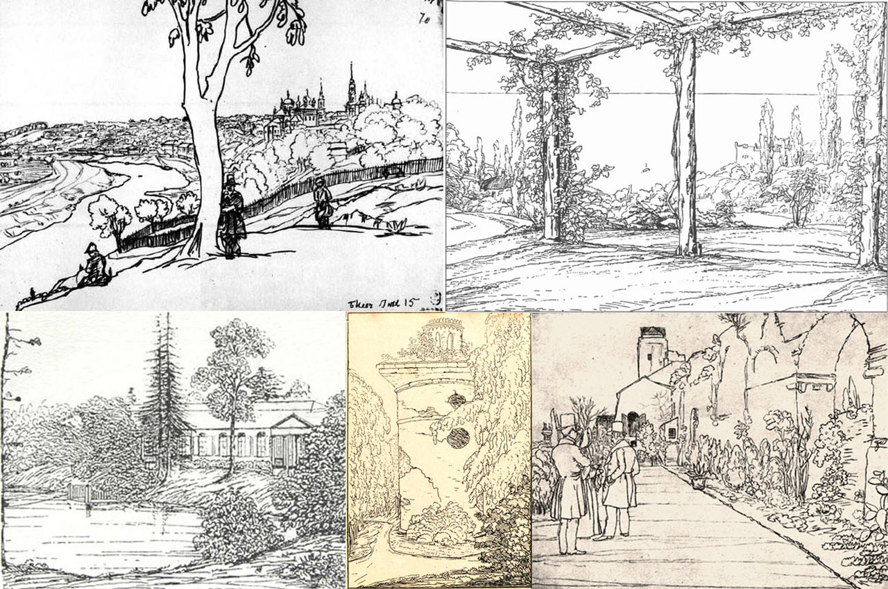 ПОЭТ В РОССИИ БОЛЬШЕ, ЧЕМ ПОЭТ, или КАК ОТМЕТИЛИСЬ НАШИ АВТОРЫ В ЖИВОПИСИ, ГРАФИКЕ И Т. П. М.В.Ломоносов Ну, что тут скажешь — везде человек поспел. Хотя и начинал с нуля (не то что наставники с гувернерами, а даже «среднее образование» ему не светило), и прожил каких-то 53 года… Мозаика «Полтавская битва» (6,4 х 4,8 м), украшающая вестибюль Академии наук в Петербурге, собрана из 1 000 030 000 кубиков смальты, созданной по изобретенной самим Ломоносовым технологии: он вдохновлялся образцами старых итальянских мастеров, которые хранили свое умение в тайне. А предварительно Ломоносову пришлось разработать еще и собственную теорию цветов. Кроме того, он успел создать около 40 мозаичных портретов. Полтавская битва; изображение Бога-Отца; портрет Петра I. ![]() В.А.Жуковский Поэт много путешествовал и много рисовал: Германия, Швейцария, Англия, Италия, Голландия, Россия…. В «дофотоаппаратную» эпоху, что не удивительно, рисовальные умения были более развиты и распространены, чем сейчас. Альбомная графика Жуковского — «пейзажные стенограммы» — похожа на строчки письма: кажется, что рука не отстает от бегущего по пейзажу глаза. Параллельно с зарисовками поэт делал дополняющие их путевые заметки, которые опережали живописное мышление эпохи на пару десятков лет — их можно назвать импрессионистскими: Листья, блестящие от дождя; камни; тень дерев на серебряной пене; капли с дерев; кипенье воды в свете и в полусвете. Сквозь решетку листьев (Манфред) черные стволы дерев; трепет листьев; одно огромное дерево, как призрак с раскинутыми руками… ![]() К.Н.Батюшков «О память сердца! ты сильней / Рассудка памяти печальной…» После постигшей его трагедии (всю вторую половину своей 68-летней жизни поэт провел в состоянии тихого помешательства) Батюшков занимался в основном лепкой и рисованием — и создал ряд необычных рисунков, где повторяются одни и те же мотивы: белая лошадь пьет воду, деревья, раскрашенные в красное, зеленое и желтое, замок, вдали море с кораблями, темное небо и бледная луна. Все это — в довольно нехарактерной для эпохи манере. ![]() А.С.Пушкин Знаменитые пушкинские профили подтверждают изречение «стиль — это человек». В данном случае — человек, написавший «Повести Белкина», «Пиковую даму» и «Капитанскую дочку», мастер лаконического штриха. Например, известно 10 портретов Баратынского, выполненных профессионалами, — и по ним сложно представить себе его внешность: все они противоречат друг другу. Благодаря наброску Пушкина можно судить о том, кто из художников удачнее прочих передал облик поэта-философа. Сверху вниз — портреты графини Воронцовой и друзей Пушкина, его современников-поэтов: А.Мицкевич, Д.В.Давыдов, А.А.Дельвиг, Е.А.Баратынский, П.А.Вяземский, В.К.Кюхельбекер, Д.В.Веневитинов. Слева — портреты, написанные профессиональными художниками. Безусловно, они гораздо подробнее. Но слегка шаржированные пушкинские рисунки дают такие характерные «формулы лица», что в этом смысле работы портретистов к ним уже ничего не прибавляют. ![]() М.Ю.Лермонтов Он учился живописи у художника П.Заболотского — и одно время подумывал полностью посвятить себя ей. Этого, как известно, не случилось, зато Лермонтов на хорошем любительском уровне освоил живопись маслом, акварель, рисунок и даже технику офорта. Пейзажные работы Лермонтова по преимуществу связаны с Кавказ
