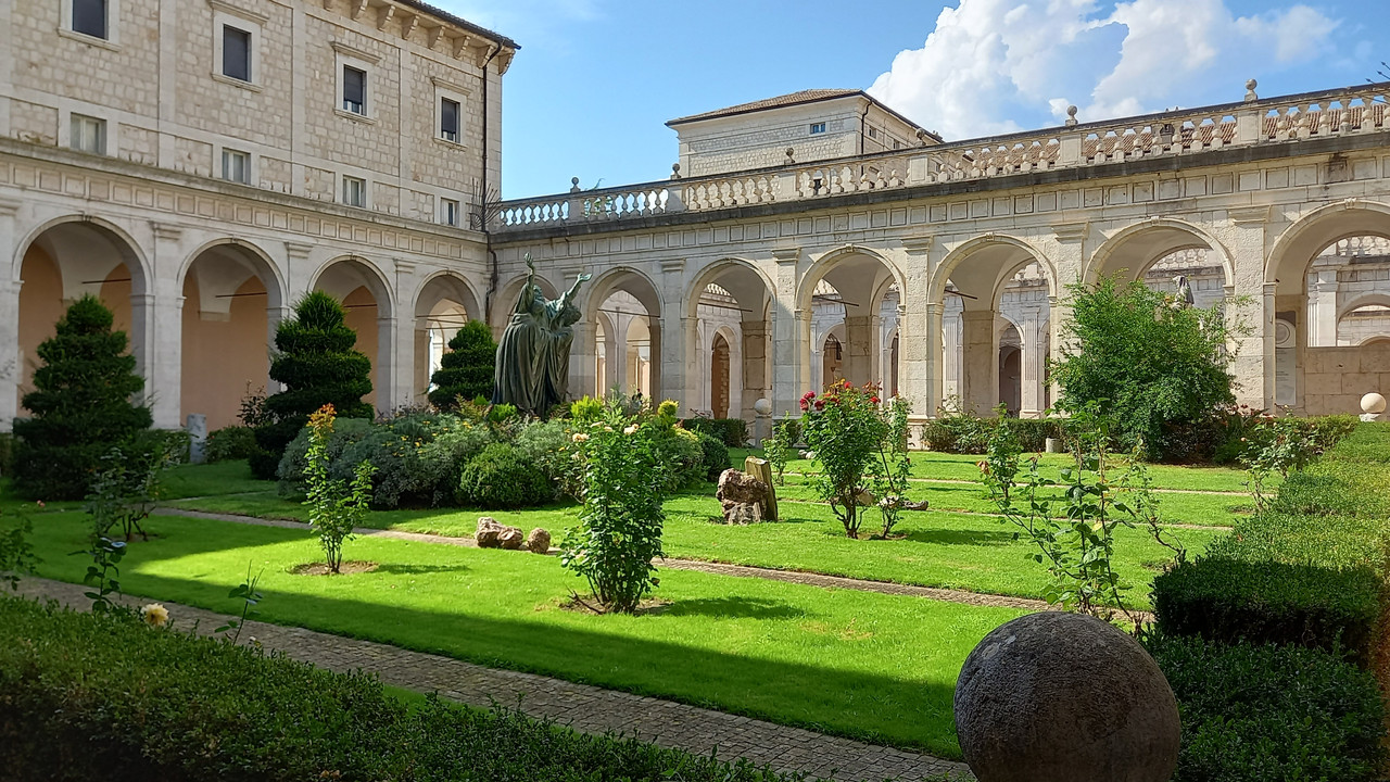 Добавил ещё один тег на всякий случай, едем дальше. Следующее место имеет отношение к теме уже упомянутого "паломнического тура". Монтекассино, знаменитое бенедиктинское аббатство, основанное самим Св.Бенедиктом в 530 году. Бенедиктинцы - самый первый монашеский орден католичества, первый сформулированный на бумаге устав, который лёг в основу всех остальных монашеских орденов более позднего периода. Место само по себе знаковое, хоть и разрушалось неоднократно, однако всегда заново отстраивалось, расширялось и украшалось бессчётное количество раз. Уникальный ансамбль и просто очень красивая локация на вершине горы с потрясающим видом. Последнее разрушение чуть не стало фатальным - монастырь был практически стёрт бомбардировками союзников весной 1944 года, однако его с блеском отстроили заново после войны. Восстановление Монтекассино стало одной из приоритетных национальных задач, неким символом, и осуществлялось полностью за госсчёт. Монастырь действует и процветает, по-прежнему являясь важнейшим религиозным и духовным центром. Весь комплекс отлично видно с автострады, я много раз его наблюдал, проезжая мимо, и всё не удосуживался заехать, в этот раз вот сподобился наконец. Пролетев порядка 120 км по скоростной трассе на юго-восток от Рима в сторону Неаполя, сворачиваем на местную дорожку, проезжаем сам городок Кассино у подножья горы и начинаем лезть вверх по серпантину. Уже с середины подъёма открываются умопомрачительные виды на долину. ![]() ![]() А наверху они становятся ещё головокружительней. ![]() ![]() Идём внутрь. ![]() ![]() ![]() ![]() ![]() ![]() ![]() ![]() ![]() Интерьер собора и крипты. Крипта поздняя (если совсем честно, просто новьё) и, надо признать, довольно нелепая - махровый модерн с уклоном в нечто псевдоегипетское. Качественно, богато, но стилистически - дичь дичью. ![]() ![]() ![]() ![]() ![]() ![]() ![]() ![]() ![]() ![]() ![]() ![]() ![]() При соборе, конечно, музей - довольно большой и толковый, но мучить вас им не буду - разве что чудесным Боттичелли да парой фото рукописных книг и фрагментов мозаик, спасённых из завалов после бомбардировки. И одно фото той самой бомбардировки - чтобы было понятно, из каких руин поднято то, что мы видим сейчас. ![]() ![]() ![]() ![]() ![]() Ещё несколько симпатичных деталей во двориках, ароматы цветов, прочие мелочи - и на выход. Как будто делаешь шаг в небо. ![]() ![]() ![]() ![]() ![]() Продолжение следует. 3 октября 2024