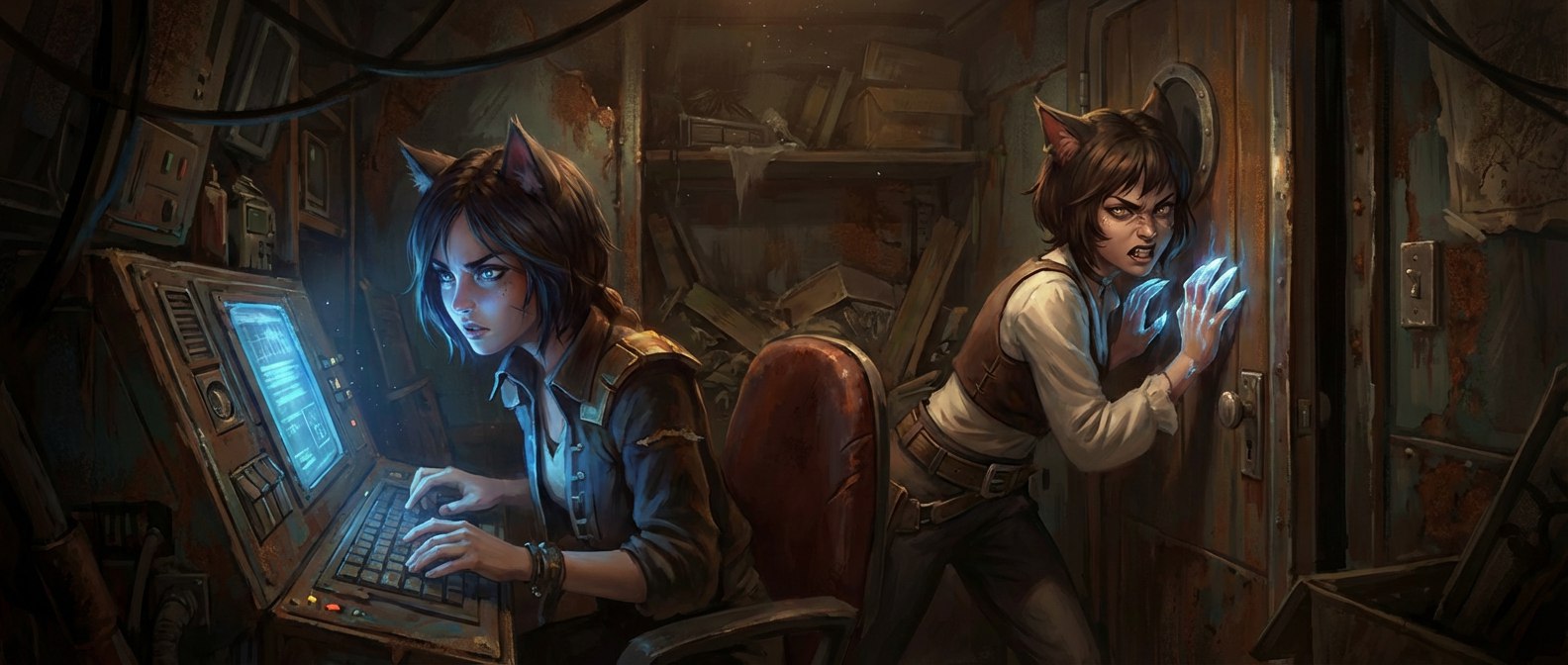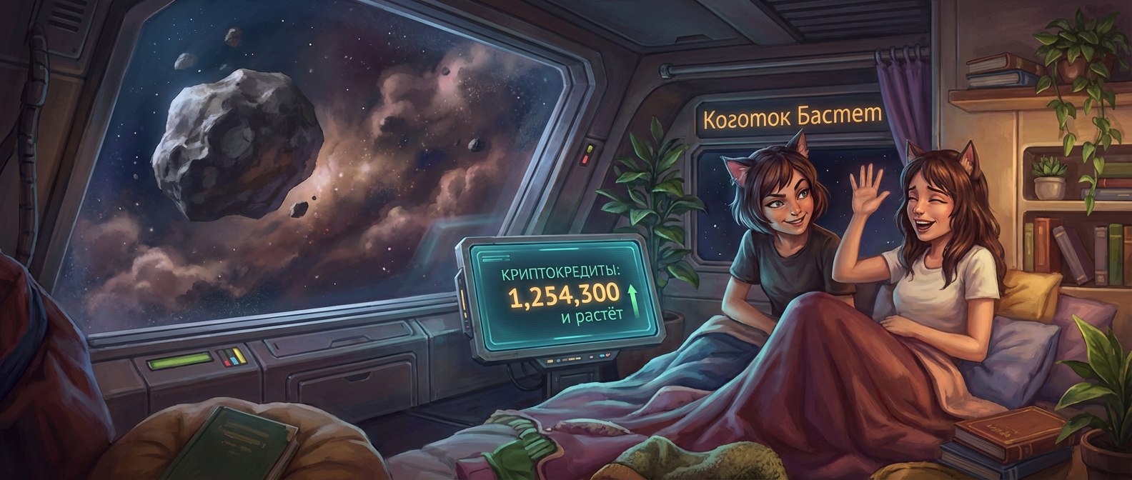 Просто решил прогнать свою новеллу Лина и Мира: Под чужим флагом дав прочесть ее Дип Сику и попросив написать для меня несколько арт-промтов на те сцены, что его "впечатлили". Я до сих пор под впечатлением - видеть, как оживают на экране твои смутные образы, что были рождены и изложены на экране... Это так странно. Как будто персонажи действительно обрели реальность, объем, вес и судьбу. Ну и вот что вышло, здесь - цитата из рассказа и иллюстрация. «Трезубец Нептуна», флагман клана «Кровавый Спутник», дрожал и издавал стоны, словно огромный зверь, страдающий от несварения желудка. Лина, прижав уши к голове, напряжённо ловила эманации, исходящие от окружающих приборов, и одновременно прислушивалась к шагам, доносящимся из-за двери. Её хвост нервно постукивал по полу, а пальцы выбивали дробь на перегородке. Рядом с ней, словно тигрица в клетке, металась Мира. Её покрытые рыжей шерсткой уши дрожали от ярости. — Как же глупо было лететь так далеко на этом дурацком катере! Мы попали в руки пиратов! Когда же мы наконец с ними разберёмся? Меня раздражает этот уродливый корабль и вонь, которая пропитала его до последней заклёпки! Рвать — драть! — возмущалась она. — Успокойся, — сказала Лина, не отрывая взгляда от панели на стене, за которой скрывался информационный узел палубы. Как удачно расположена их камера… — Они вернутся через десять минут. Говорят, что хотят продать нас работорговцам. — Отлично! — Мира радостно оскалилась. — У меня как раз чешутся мои милые когти. Вырвем им глотки, захватим корабль и рванём к «Коготку»! ![]() Шаги загрохотали уже у самой двери. Лина мгновенно выключила панель, а Мира прижалась к стене, на всякий случай готовясь к прыжку. Дверь открылась с протяжным скрипом, напоминающим стон, который могли бы издать многие механизмы на этом корабле. В проёме появился Гарг — двухметровый гигант со шрамом через искусственный глаз. — Млеете, девочки? — он хрипло рассмеялся. — Скоро… ![]() — Похоже, «Тени» удачливее, и сейчас они пошли на абордаж, — констатировала Лина. — Впрочем, так и есть, я вижу их в камеры внешнего обзора. — Давай отсюда уже убираться, — прошептала Мира, натягивая боевые перчатки и высвобождая невидимые пси-когти. — Я буду помогать тебе отсюда, а потом захвачу этот прекрасный катер, — сказала Лина. — Всё равно Гаргу он вряд ли уже понадобится... Прорвавшись к ангару, Мира увидела белоснежную «Зефирку», их маленький катер, переделанный из космической шлюпки. Он до сих пор болтался в луче захвата. Лина следила за ней и отключила луч, а после запустила реактор. «Зефирка» ожила, отбрасывая силами защитного поля ворвавшихся на палубу пиратов чужого корабля. Это была абордажная команда «Теней». Мира одним прыжком разрезала горло ближайшему противнику, который посмел направить на неё оружие, а затем швырнула в толпу электромагнитную импульсную гранату. Жахнуло хорошо, с дуговыми разрядами и прочими спецэффектами. Оглушённые пираты в отключённых бронекостюмах и боевых экзоскелетах рухнули на пол, совершенно не ожидая, что кто-то осмелится применить такие боеприпасы внутри корабля. ![]() Мира, пользуясь их замешательством, юркнула внутрь катера и плюхнулась на сиденье. Времени пристёгиваться не было. — Вперёд! — крикнула она сама себе и схватилась за штурвал. Катер рванулся в открытую пробоину навстречу беспорядочном