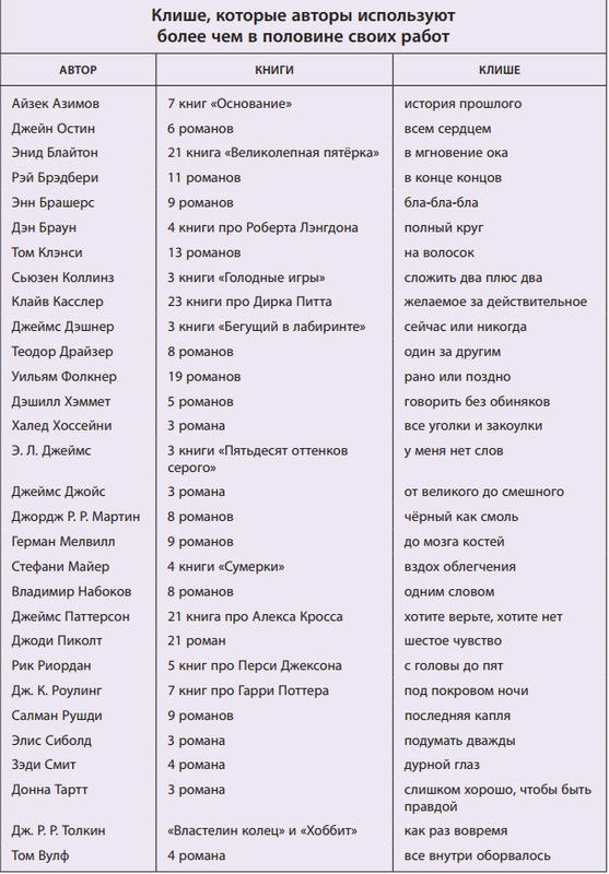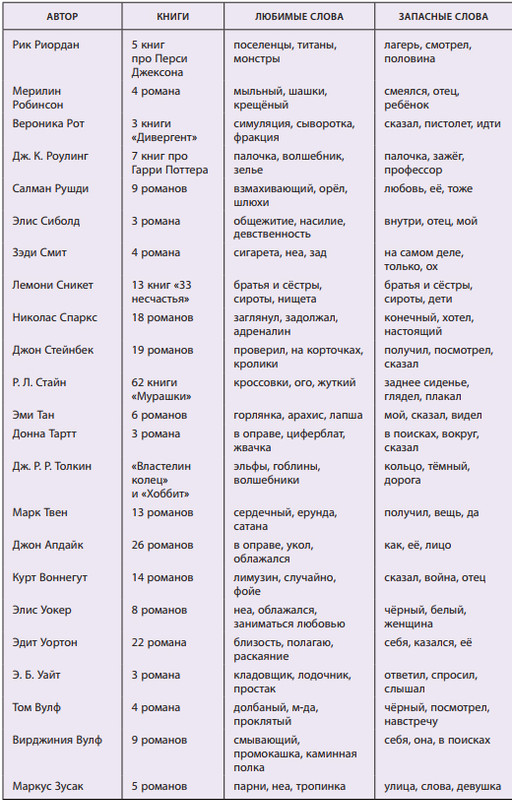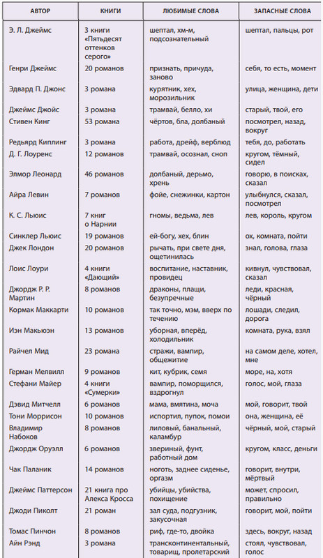 В таблице употребления "!" у Чака Паланика на 14 романов написано 06, а должно быть видимо 96)🤔 И предпоследние две таблицы с Э.Л. Джеймс задвоились) |