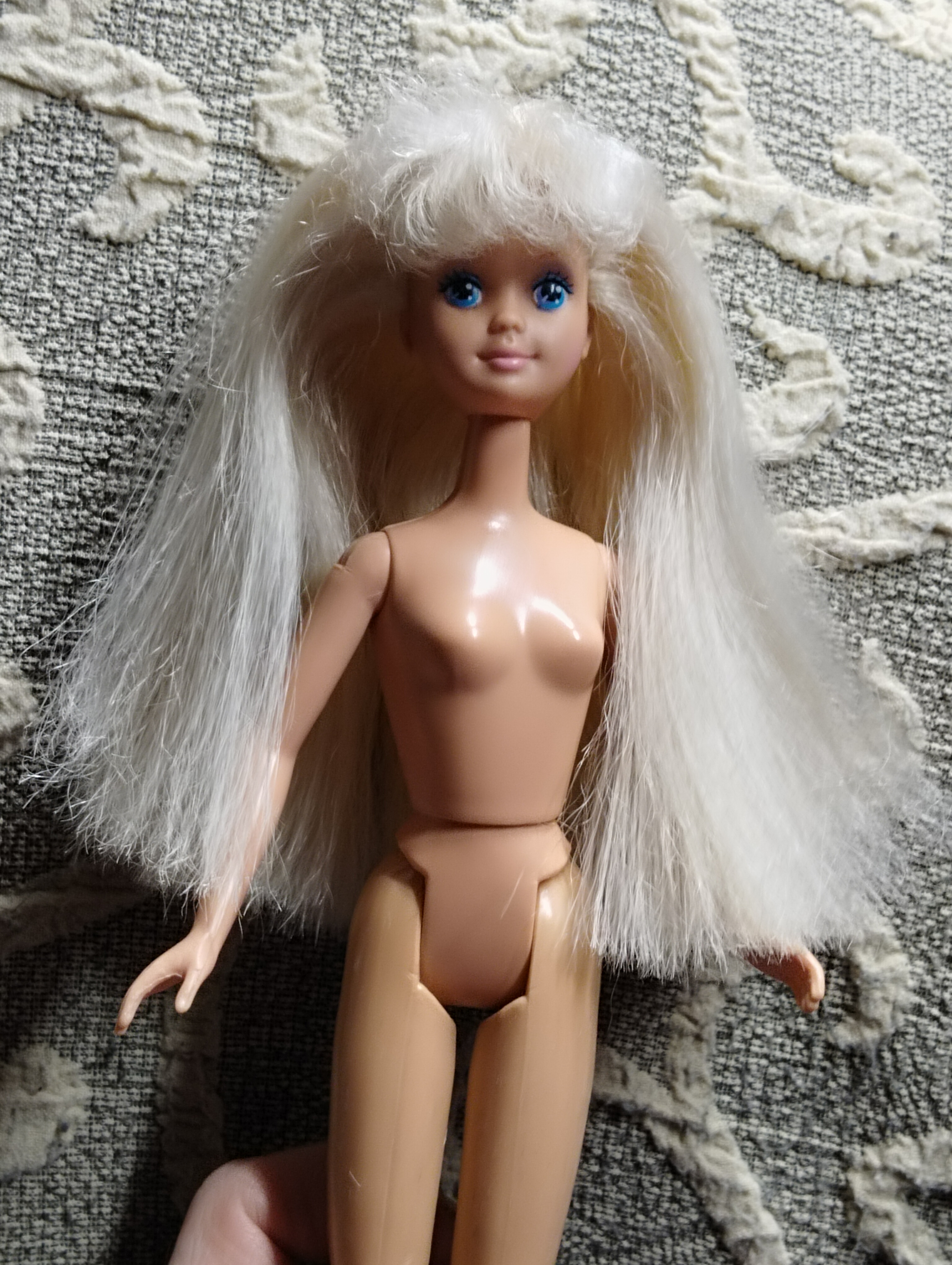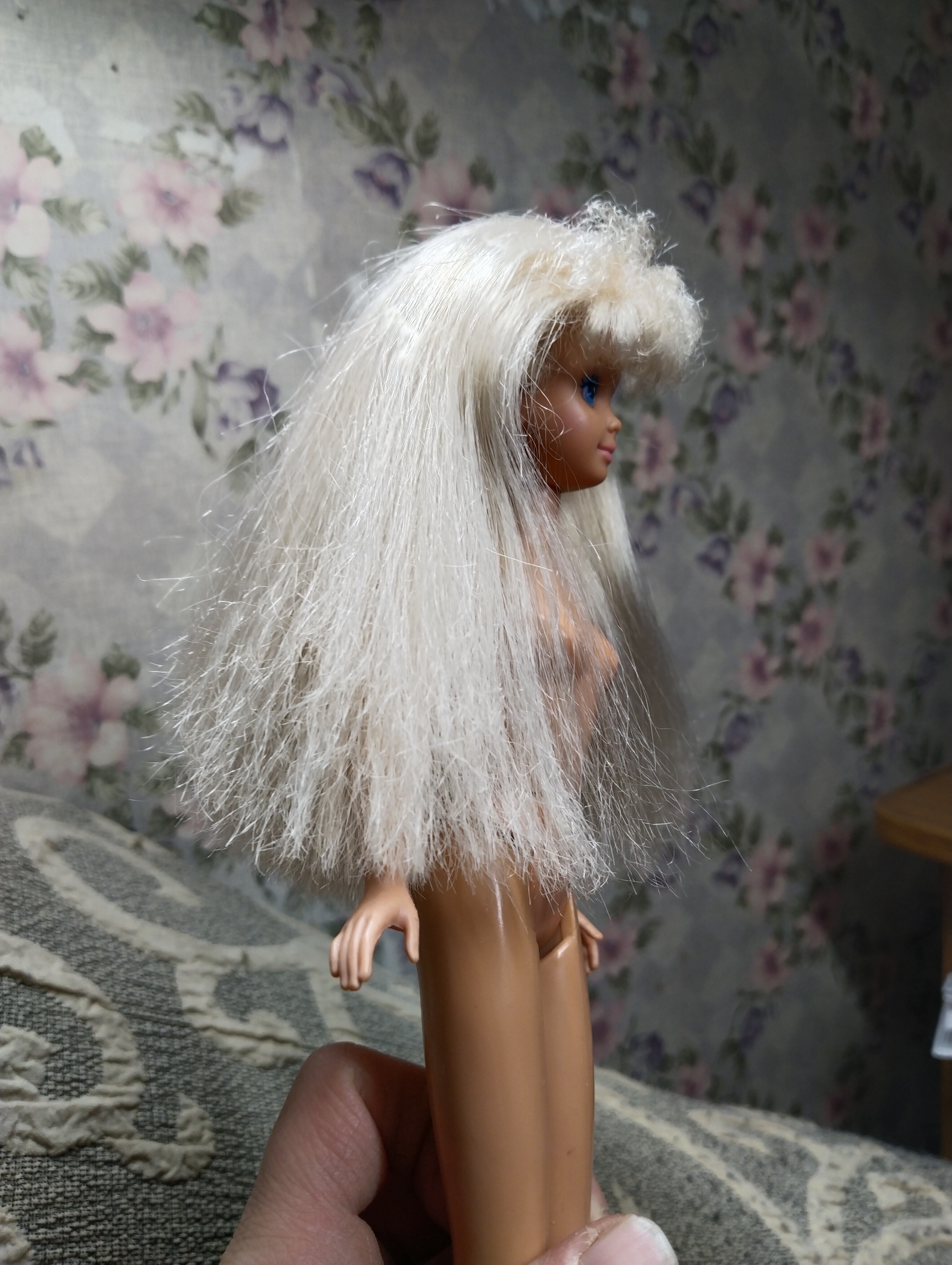 На счёт чёлки, очень рекомендую плойку для ресниц. Она нагревая волосы их разравнивает и можно придать форму челке. И не волнуйтесь, у этих стареньких барбей всё сделано очень надёжно, их можно мыть и даже завивать волосы в кипятке. Я проверяла)))