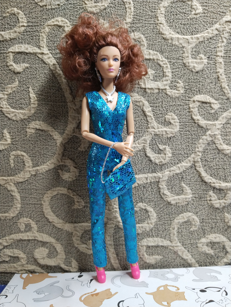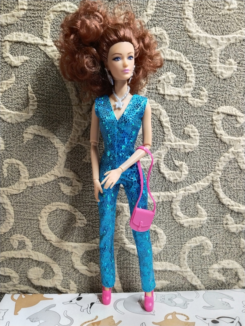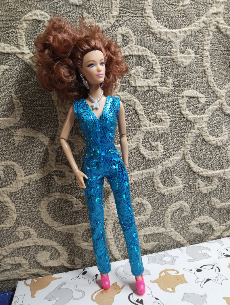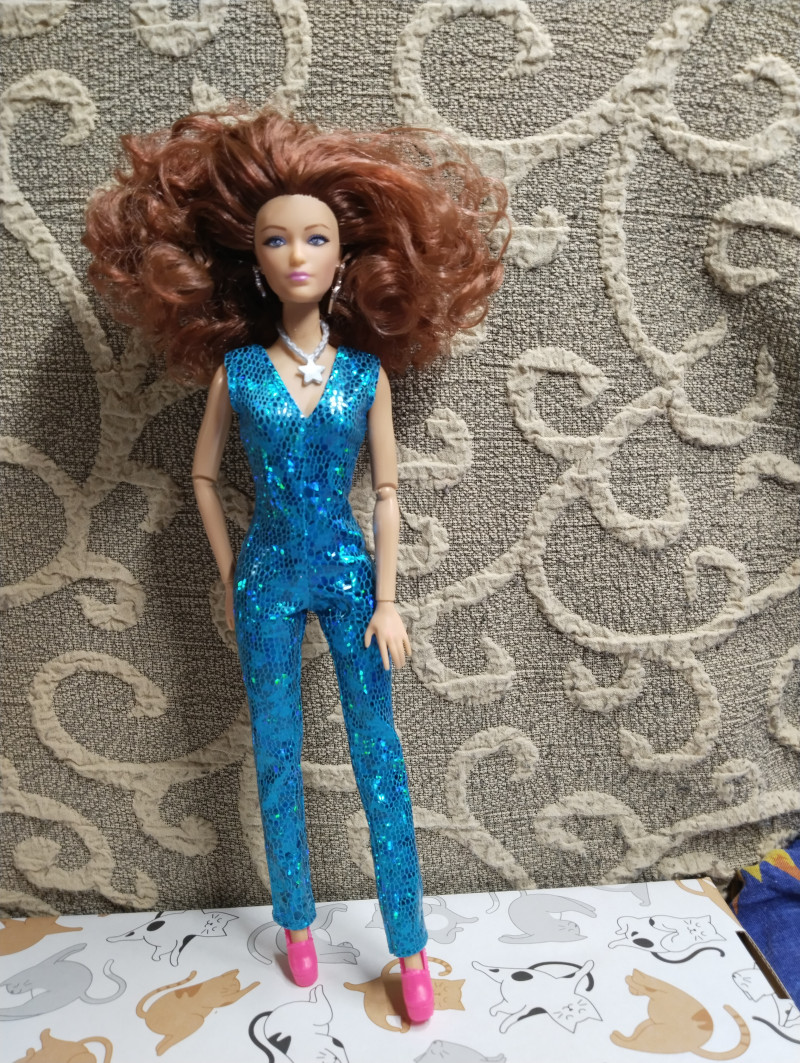 Итак, забрала сегодня и вторую рыжуху из ПВЗ. Вместе с одежками. Рыжую не буду звать Соней, хотя напрашивается конечно "Рыжая Соня" 😎 Пусть будет Марго, в честь ожп из моих фиков. Тем более та тоже рыжая. Что скажу? Кукла очень красивая на лицо. У нее не просто голубые глаза, у них фиолетовый оттенок в лучших традициях фикбука. Пришла вот в такой коробке. Из аксессуаров расческа, сумка и туфли. И помимо серег ещё колье. ![]() Родной костюм смотрится на ней хорошо хоть и слегка вырвиглазен. Сшит аккуратно. ![]() Самая ее странная часть - это волосы. Они какие-то тусклые на вид и как будто свалянные. ![]() Она шла с силиконовой резинкой, которые их удерживали. Я ее потом сняла и сразу пожалела, волосы сразу превратились в воронье гнездо. ![]() Надо их укладывать, но мне пока лень. Закрепила их крабиком на затылке. ![]() ![]() ![]() ![]() Потом переодела ее в комбез. Он, конечно, бомба и очень хорошо сидит на ней. ![]() ![]() Шарниры в меру тугие, единственное что на троечку это лохматые волосы. Пысы не знаю почему все перевернутое загрузилось. Потом исправлю. вчера в 21:58