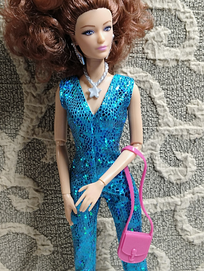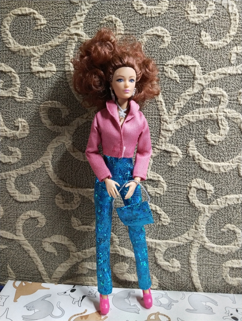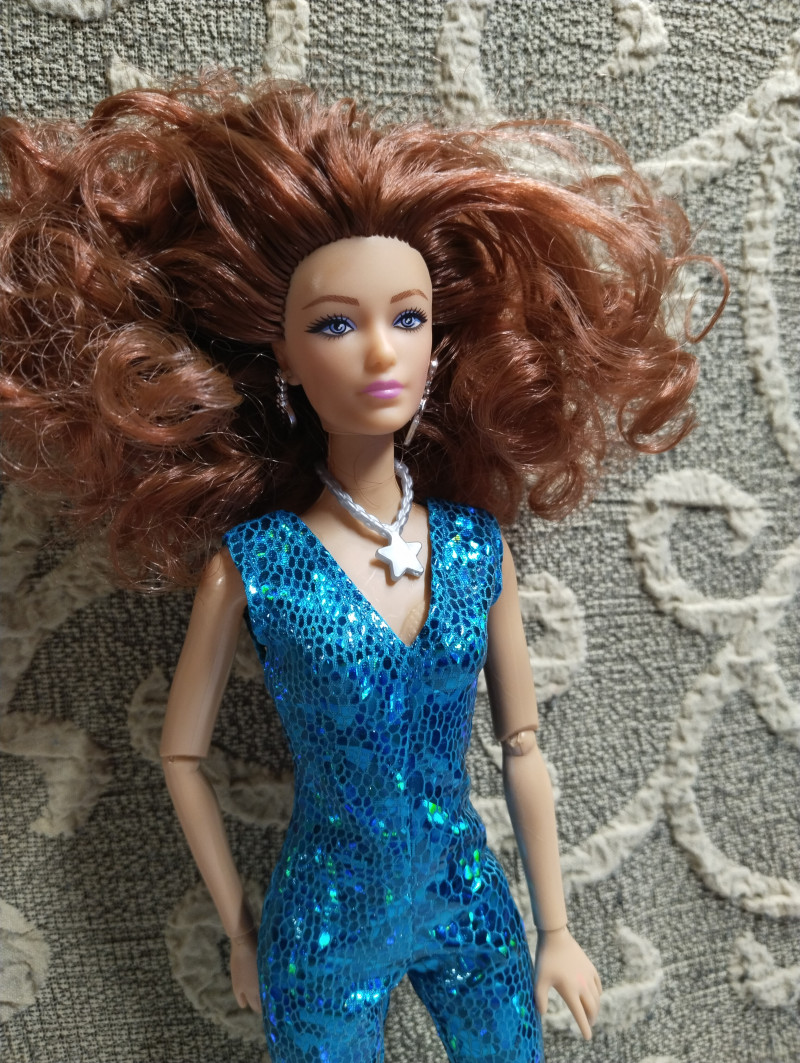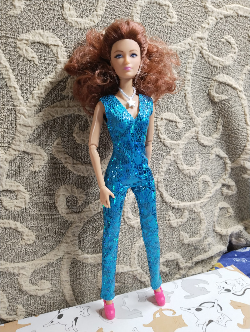 Итак, забрала сегодня и вторую рыжуху из ПВЗ. Вместе с одежками. Рыжую не буду звать Соней, хотя напрашивается конечно "Рыжая Соня" 😎 Пусть будет Марго, в честь ожп из моих фиков. Тем более та тоже рыжая. Что скажу? Кукла очень красивая на лицо. У нее не просто голубые глаза, у них фиолетовый оттенок в лучших традициях фикбука. Пришла вот в такой коробке. Из аксессуаров расческа, сумка и туфли. И помимо серег ещё колье. ![]() Родной костюм смотрится на ней хорошо хоть и слегка вырвиглазен. Сшит аккуратно. ![]() Самая ее странная часть - это волосы. Они какие-то тусклые на вид и как будто свалянные. ![]() Она шла с силиконовой резинкой, которые их удерживали. Я ее потом сняла и сразу пожалела, волосы сразу превратились в воронье гнездо. ![]() Надо их укладывать, но мне пока лень. Закрепила их крабиком на затылке. ![]() ![]() ![]() ![]() Потом переодела ее в комбез. Он, конечно, бомба и очень хорошо сидит на ней. ![]() ![]() Шарниры в меру тугие, единственное что на троечку это лохматые волосы. Пысы не знаю почему все перевернутое загрузилось. Потом исправлю. вчера в 21:58