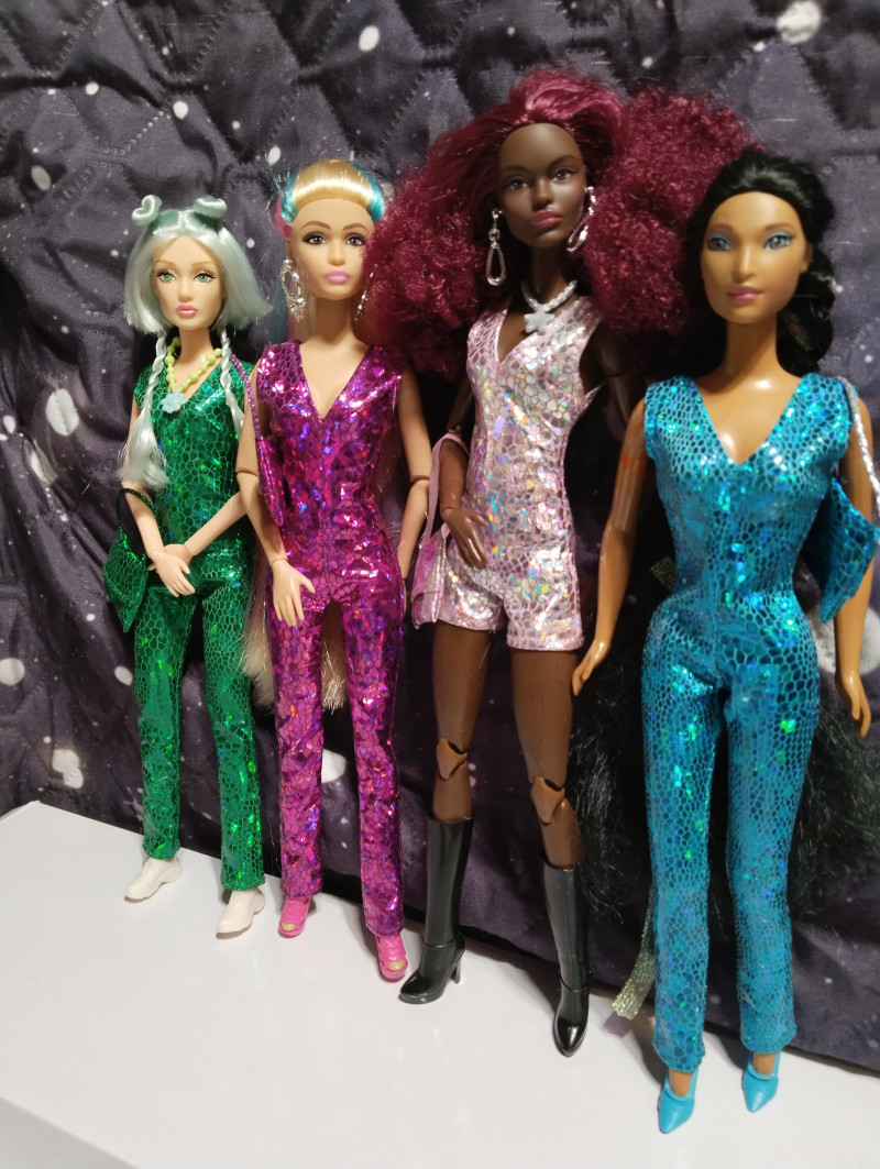 Болезнь пошла вразнос и я по ночам нервно тыкаю в платьица для кукол на озоне или вб. Мне надо смирительную рубашку, ыыы. Сегодня забрала очередные комбезы от Вианы, просто потому что они бомбические. Нарядила Тару и Софи в розовые одежки. Они, конечно, смотрятся в них очумительно. ![]() ![]() ![]() ![]() ![]() ![]() ![]() Коллективное фото девиц в комбезах. Еще один короткий должен приехать завтра. А еще приехали покупки из Али, в частности головы. Тело уже их ждет. Но дождусь всех голов, чтобы понять, какую лучше на него посадить. Загадочное про Люсьен. Эта девушка явно неформалка и хочет куда-то сбежать от остального курятника. У нее рекорд падений с полки. Падает только она. Вот и сегодня кувыркнулась, хотя стояла плотно рядом с другими девицами. То ли она сама хочет удрать. то ли дамы ей помогают... 👀 4 января в 20:19