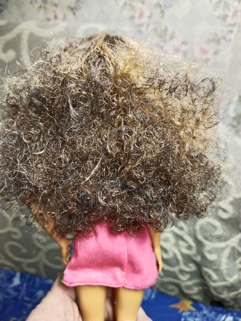 Итак, ко мне пришла латина с роскошными волосами, ради которых я ее и схватила несмотря на устаревшее не-шарнирное тело. Вот такая коробка была. ![]() ![]() Голову ессно прибили к коробке. ![]() ![]() Тася от куклы в восторге, не могла ее отогнать от нее. ![]() Очень красивая девушка! ![]() И тело красивое, мускулистое! ![]() Но блин не шарнирное. ![]() Но голова наклоняется, может не буду заморачиваться и просто оставлю ее такой. Само тело мне нравится! ![]() Надо подумать над именем. Волосы богичные. И цвет и сами кудряшки. На фото она еще не до конца расчесана. Платье простенькое, но переодену потом. вчера в 20:54