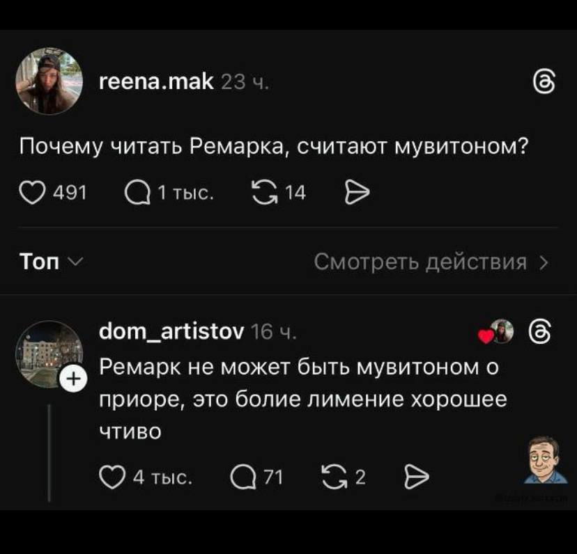 Читал я эту вашу Марию Ремарк. Ничего особенного! 🤣 Это которая про Трех Мушкетеров писала?4 |