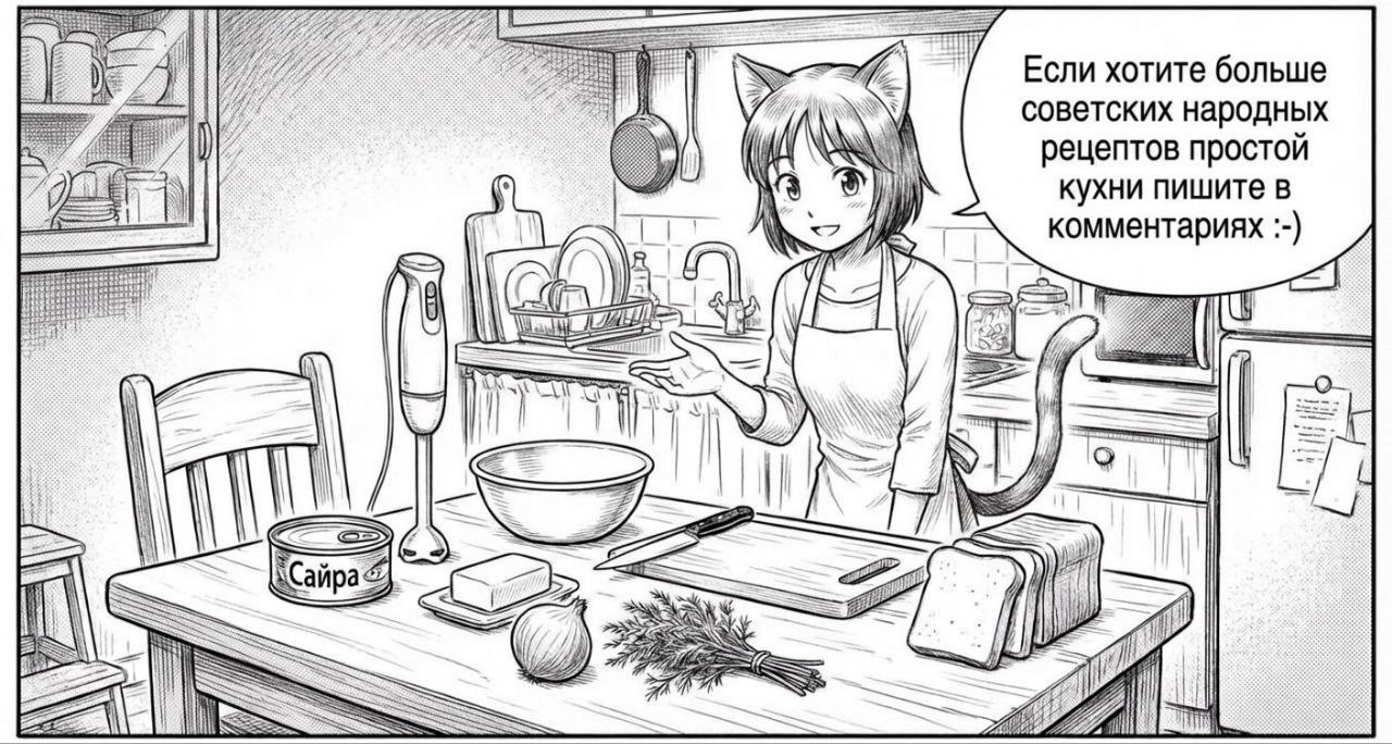 На работе купил баночку сайры от «Доброфлота», хотел схомячить, но зубы не дошли :) Принес домой и приготовил шикарные бутерброды по старому советскому рецепту. Ну, может быть, и не старому, и не совсем советскому, но еще мама моя такое иногда делала к чаю в восьмидесятые годы, когда я был мелким. Итак, бутерброды с сайрой (можно взять другую рыбу подходящую, к примеру, тунец, наверное, подойдет). ![]() Сайра консервированная, масло сливочное, лук репчатый, лучше красный салатный, укроп, хлебушек :) Способ приготовления: вскрыть банку, выложить рыбу с рассолом в удобную чашку-миску, добавить мелко нарезанный укроп, размягченное при комнатной температуре сливочное масло, тщательно размять вилкой или еще лучше погружным блендером (но в СССР этого чуда не было). Хлеб подсушить в тостере (в СССР не было, но была сухая сковородка на газу или электроплите ;) ) Намазывайте полученный паштет на хлебушек, сверху посыпать луком* мелконарезанным и наслаждайтесь. Расход ингредиентов: Сайра — 1 банка, масло — 30-40 грамм, укроп — по вкусу. Рекомендую рассол из сайры не сливать, чтобы паштет был помягче. В банке «Доброфлота» рыбы было много, а рассола — мало. Но если вдруг вам попадется противоположный вариант — определите сами. Паштет в холодильнике имеет свойство довольно сильно густеть. Интересно, что у этой технологии есть дальнейшее развитие, и я даже пару-тройку лет назад писал об этом салате. Если взять вареный рис, к примеру, один пакет (80 грамм сухого риса) рассыпчатого и смешать с паштетом, добавить мелкопорубленого вареного вкрутую яйца, немного черного молотого перца, то мы получим интересный сытный салат, какой можно приготовить на скорую руку для закуски или когда вдруг гости внаглую (хотя в век мобильников где таких взять?). И эта ветка развития закономерно приводит нас к одному из ударных советских салатов: «Грибочки фаршированные». ![]() Вариантов фаршировки, правда, масса, в том числе и с использованием настоящих грибов, но моя мама не заморачивалась и делала на основе тех же рыбных консервов начинку. Тогда яйца отвариваются вкрутую, желток добавляем в паштет, а из белка делаем ножку гриба и шляпку гриба. «Шляпу» гриба из яичного белка тогда нужно окрасить в коричневый цвет для дизайна. Для этого «шляпки» помещают в крепкую заварку и кипятят минут 10, пока они не станут коричневыми. На место желтков помещают паштет, получается похоже на боровик. «Грибы» на блюде украшают зелень и алябус — дешево, сытно и вкусно (по-советски)! Ну и напоследок :) Нет фидбека — нет рецептов, ахахаха. ![]() * если лук обычный репчатый, ошпарьте его кипятком, чтобы потерял дерзость. вчера в 07:59