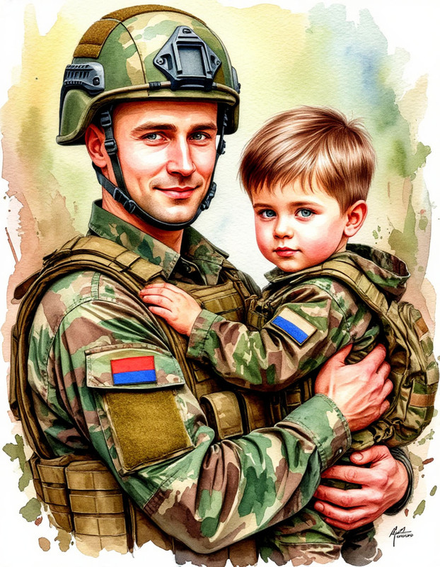 У меня промт был такой: "мужчина в каске и разгрузке в современной форме рф приятное доброе лицо смотрит прямо держит на руках ребёнка мальчика в костюме камуфляжной раскраски акварельный рисунок". Опять же, повторюсь, я не профи-генераторщик, чтобы прописывать на англе все параметры, это всё чисто для себя. Вы можете менять, например, писать "масляный рисунок" или "реалистичное фото". И опять же, по одному и тому же запросу результаты разные, даже в разных форматах - нужно экспериментировать. Пробуйте, думаю, процесс вам понравится ) 1 |
