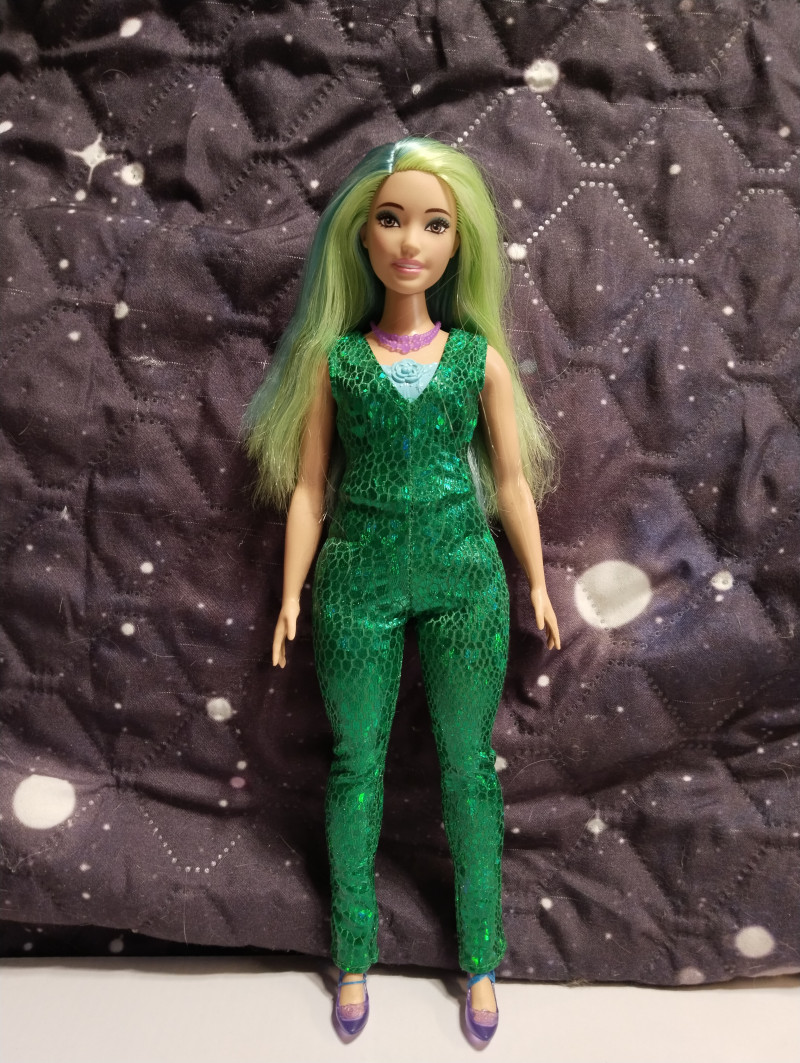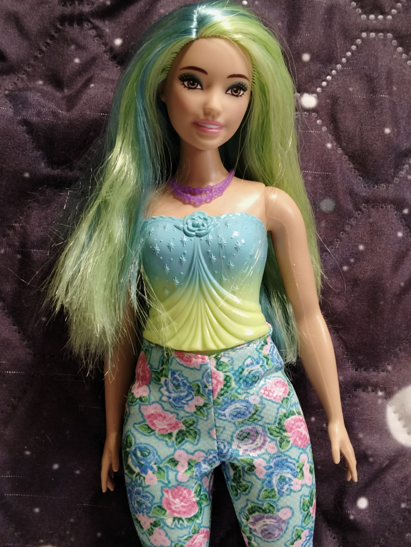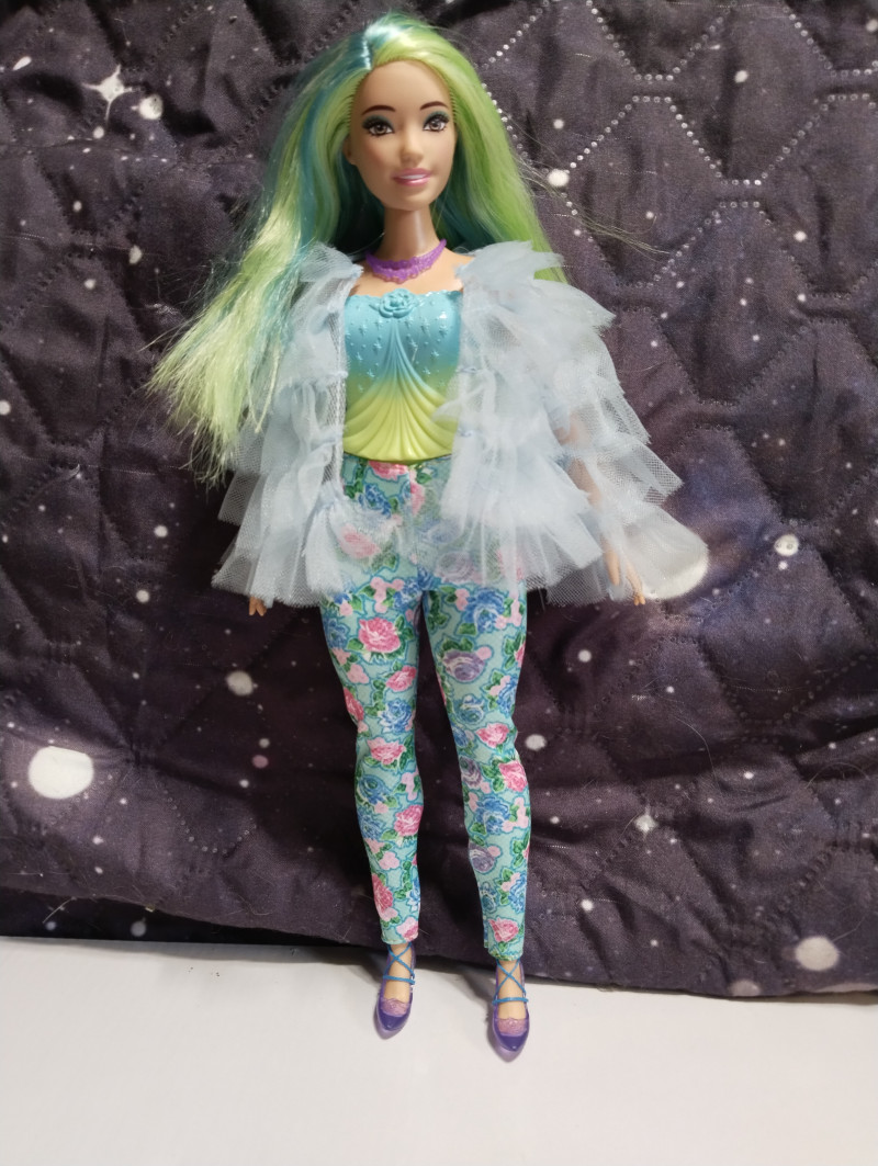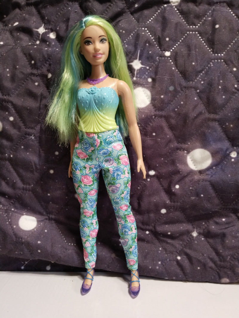 Аххх, новая пышка на деревянном теле просто бомба! Невероятная красавица. И тело роскошное. На самом деле в этих телах бы только руки-ноги менять. Но это наверное только мастера умеют, там хитрая система крепления, особенно у ног. Имя пока не могу придумать этой принцессе с зелеными волосами. Но она шикарная. Ща фото добавлю. Ждите! Итак, стоит она символические деньги и называется "Принцесса в вечернем платье" Коробка скромная без прибамбасов. Игровая кукла. ![]() Личико стандартное и очень красивое. Надо потом погуглить какой это молд. Может тоже Милли хз. ![]() Шла вот с такой юбкой. Прикольная и неубиваемая. ![]() Не клеенка, но очень плотная ткань. Если с ней купаться, ничего не будет, думаю. Купальник молдированный, и в этом есть какой-то шарм. ![]() С девочкой в комплекте шли туфли, ожерелье и ободок. Туфли на ногах не держатся, превратила их в балетки и закрепила резинкой. Стопа у куклы полукаблучная, то есть обуви вообще не найти. Маттел верны себе и нашли повод вбить штыри в башку даже этой дубовой куклы. Ободок прибили. Так что и она со штырями. *матерится* ![]() Я ухватила ее ради чудесных волос. Они конечно очень сальные были но после расчесывания стали получше. Втиснула ее в комбез от Вианы. И отлично сел! ![]() Волосы крупным планом. Обалденная! Пришлось чуть подровнять, были бахромой. ![]() ![]() ![]() Голова очень подвижная и поэтому кукла фотогеничная невероятно. Барби все таки топ в этом плане. А потом я вспомнила про штаны Фанси. Сели как родные! ![]() ![]() А потом вспомнила про Викино пальто... И образ сложился! ![]() ![]() 7 февраля в 12:05
