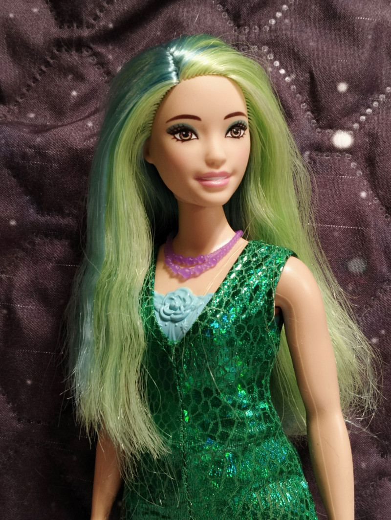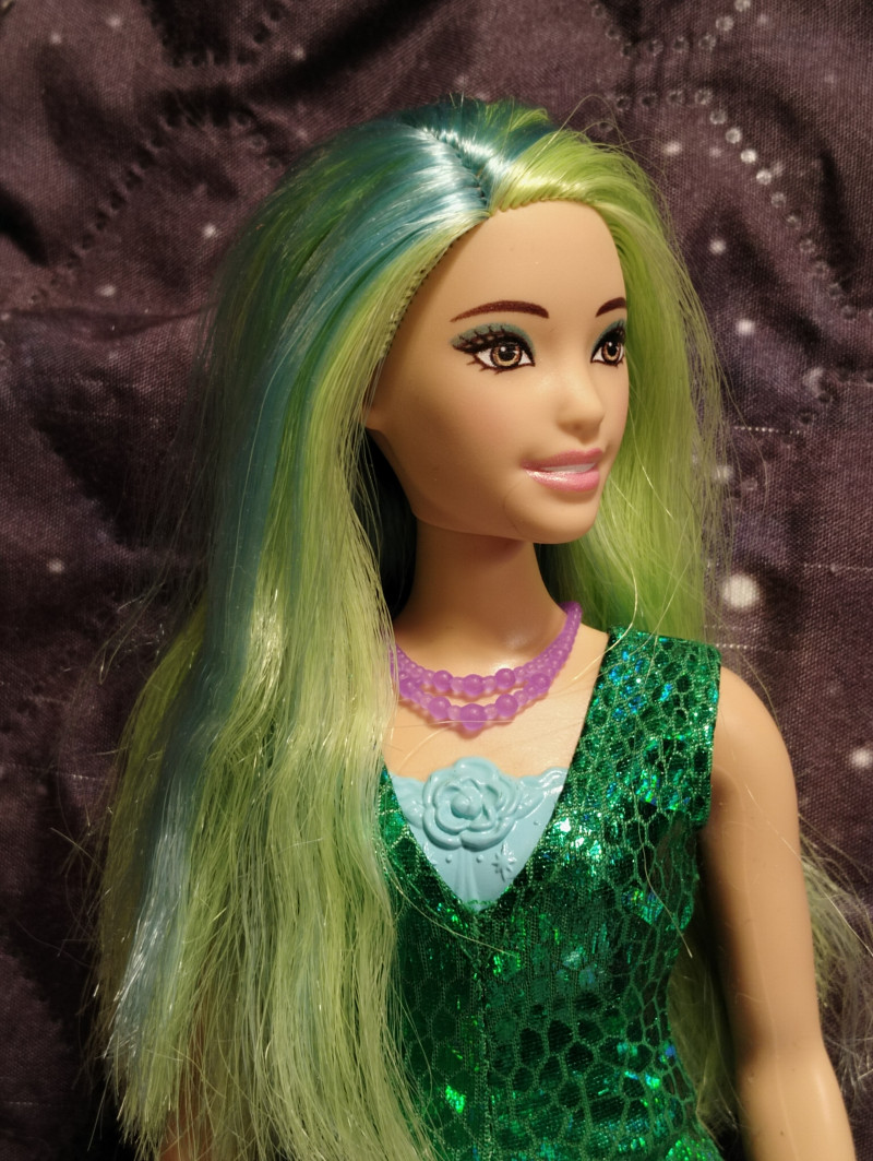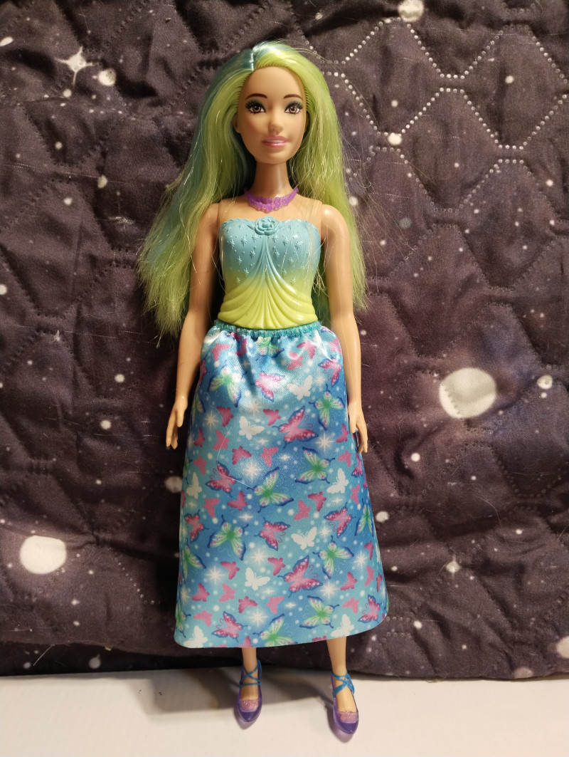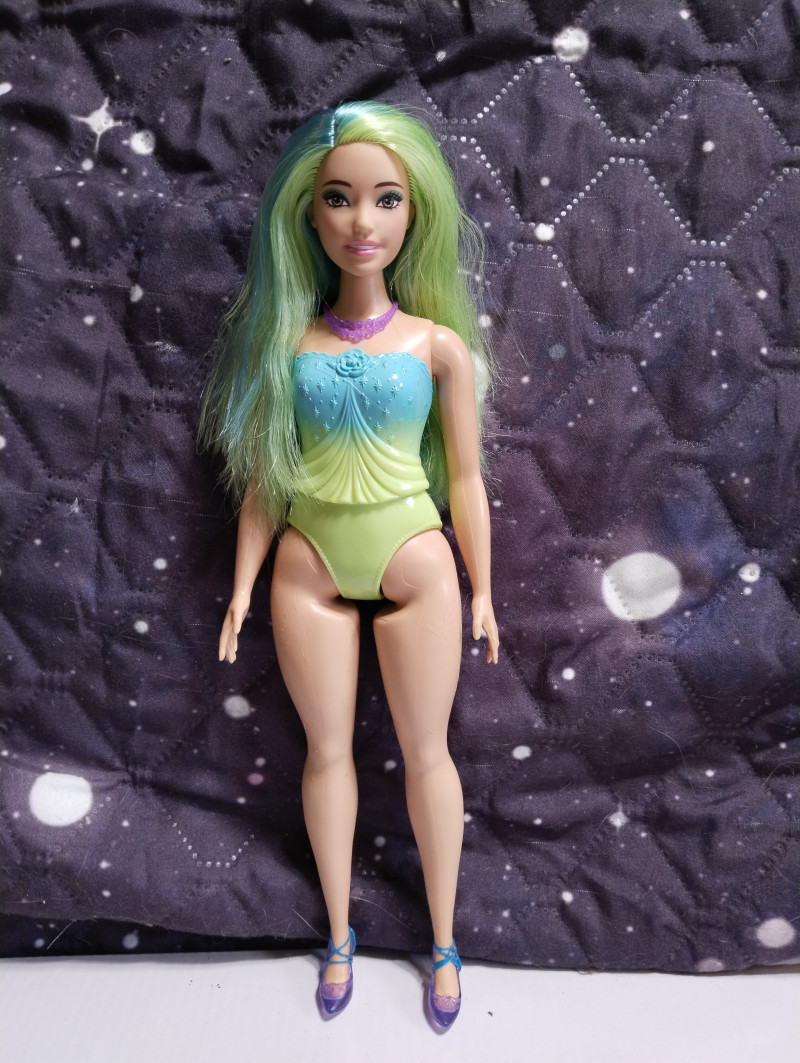 Аххх, новая пышка на деревянном теле просто бомба! Невероятная красавица. И тело роскошное. На самом деле в этих телах бы только руки-ноги менять. Но это наверное только мастера умеют, там хитрая система крепления, особенно у ног. Имя пока не могу придумать этой принцессе с зелеными волосами. Но она шикарная. Ща фото добавлю. Ждите! Итак, стоит она символические деньги и называется "Принцесса в вечернем платье" Коробка скромная без прибамбасов. Игровая кукла. ![]() Личико стандартное и очень красивое. Надо потом погуглить какой это молд. Может тоже Милли хз. ![]() Шла вот с такой юбкой. Прикольная и неубиваемая. ![]() Не клеенка, но очень плотная ткань. Если с ней купаться, ничего не будет, думаю. Купальник молдированный, и в этом есть какой-то шарм. ![]() С девочкой в комплекте шли туфли, ожерелье и ободок. Туфли на ногах не держатся, превратила их в балетки и закрепила резинкой. Стопа у куклы полукаблучная, то есть обуви вообще не найти. Маттел верны себе и нашли повод вбить штыри в башку даже этой дубовой куклы. Ободок прибили. Так что и она со штырями. *матерится* ![]() Я ухватила ее ради чудесных волос. Они конечно очень сальные были но после расчесывания стали получше. Втиснула ее в комбез от Вианы. И отлично сел! ![]() Волосы крупным планом. Обалденная! Пришлось чуть подровнять, были бахромой. ![]() ![]() ![]() Голова очень подвижная и поэтому кукла фотогеничная невероятно. Барби все таки топ в этом плане. А потом я вспомнила про штаны Фанси. Сели как родные! ![]() ![]() А потом вспомнила про Викино пальто... И образ сложился! ![]() ![]() 7 февраля в 12:05