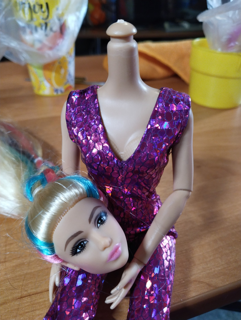 ОПЕРАЦИЯ ГИБРИДИЗАЦИИ ❗ворнинг. Шок-контент и куклорасчлененка! Нервным не смотреть! Сидела я сидела и вдруг решила посадить таки голову Софии на тело барби-йожки. Благо утром не надо рано на работу. Налила в кружки воды погорячее, завернула девушек в пакеты и сунула головами вниз, греться. Софи и Йожка кажется не ожидали, что это именно сегодня случится. - Мамочки! - Горячо! ![]() Поскольку у Софии голова без якоря, она снялась без проблем. - Эээ...ничего себе фокусы! И что теперь делать? ![]() - Ждать, когда сниму голову Йожки. И вот тут была засада! Якорь был такой цепкий, что просто нагреть в горячей воде было недостаточно. Я билась над головой Барби полчаса, и пришлось греть ее в кипятке. Наконец, голова снялась, хотя, конечно, якорь ⚓ в основании чуток побелел (и это значит, что пластик плохо прогрелся и начал трескаться. Вторая пересадка может его сломать. Поэтому больше с этим телом их делать не буду). Феном так не прогреть вообще, так что только в кипятке! Поэтому фоток не делала, надо было срочно сажать голову Софии, пока не остыла. Это было сложно, но получилось! - О, господи! Не могу поверить, что могу посмотреть вниз, вверх и даже вбок! ![]() Йожку посадила на тело Софии, чтобы голова не валялась без дела. - Ой, и как прошла операция? Я получила лицо Лины, да? Было так больно. Шея до сих пор болит ... И волосы выдрались. Почему я не могу шевелить головой? Это нормально? ![]() - Теперь понимаешь, как я жила раньше, да? Видишь только потолок. ![]() - Но лицо-то хоть изменилось? - Лицо как лицо. Зато у тебя теперь клевый комбез. ![]() - А что с моими руками?! Я не могу до головы дотянуться! - Зато я теперь могу. Спасибо за классное тело! ![]() - А мне что делать теперь? ![]() - Не дергайся. Хозяйка заказала много тел из Китая. С шейными и грудными шарнирами. Потом пересадит тебя на тело получше. ![]() - Может даже прическу тебе сделает нормальную.... 10 февраля в 12:53