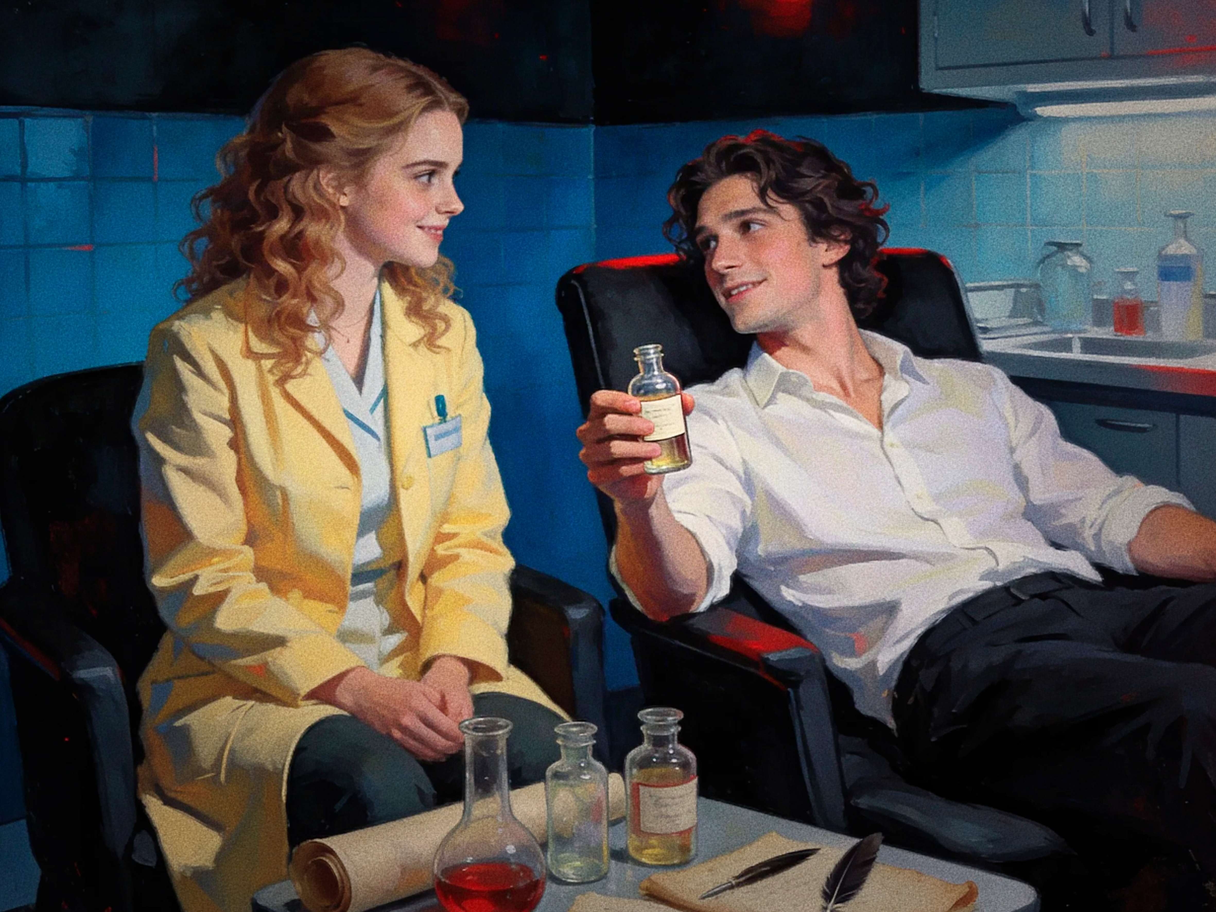 Про этот нейроарт имеется фанфакт: на картинке книжка у Тео на столе сгенгерилась перевёрнутая, и я решила не переделывать, а обыграть этот момент в тексте 🙃