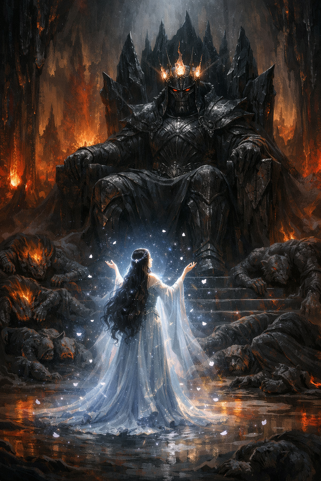 О, тут Лютиэн прекрасна! Но она всегда прекрасна)) Чувствуется, что она - явление из совсем-совсем другого мира, такая светлая и нежная) А вот Моргот удачнее на другом арте, тут он слишком... обычный, такой, как все злодеи в железных масках) 1 |
