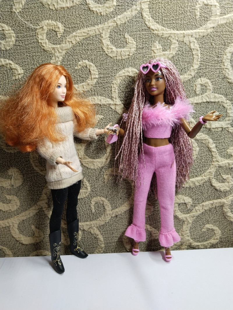 ТАЯ В порыве поиска тела для дубовой Дайи заказала в ДМ розовую Барби с афрокосичками (розовыми) на молде Дайи. Была слабая надежда, что скинтон совпадет, а серия Барби Делюкс Стайл выпускалась шарнирными, не мтм, но и не совсем дерево. Собственно, на Дайю рыжую дубовую я наткнулась в поиске розовой афрокосички, потому что шла она по сильной скидке (в ДМ очередное расхламление и распродажа остатков). В магазе в открытом доступе она не лежала и воще была в наличии одна. Поэтому ее заказала самовывозом и мне ее достали и приготовили. На лицо дубовая Дайя имхо красивее, но волосы афры впечатляют. Так что взяла. Коробка у нее прекрасна - открыл и достал. Ничего не надо рвать зубами, мучаясь. Вся распаковка заняла три минуты и коробка как новая. Вот она какая, розовая афрокосичка. ![]() Розового много. Но это такая серия, все в ней было розовое. ![]() Девчушка прелестная и аккуратная. Шарниры не разболтанные, лицо ровное. Волосы обалденные и очень мягкие, не магнитятся. Длинные, роскошные. Обратная сторона коробки и арты с другими куклами серии. Блонда на молде Милли. Бгг. Маттел обленился, никак не перестанет Милли пихать в каждую серию. ![]() Выпустила девочку на волю. И оказалось, что она петитка! Маленького роста! Я очень этому рада. Грызла себя за покупку дублей, но тут Дайи у меня разные. Дубовая Дайя, Дайя-Нелли-пышка и вот Дайя-петитка. ![]() К лапке у нее резинкой прикрутили розовый клатч и типа кольцо смахивающее на кастет. ![]() Розовая но удаленькая. ![]() Она вся мягенькая и приятненькая. Костюм тира из фетра/флиса, тоже мягкий и пушистый. ![]() А прода будет в комментах. 28 февраля в 23:23