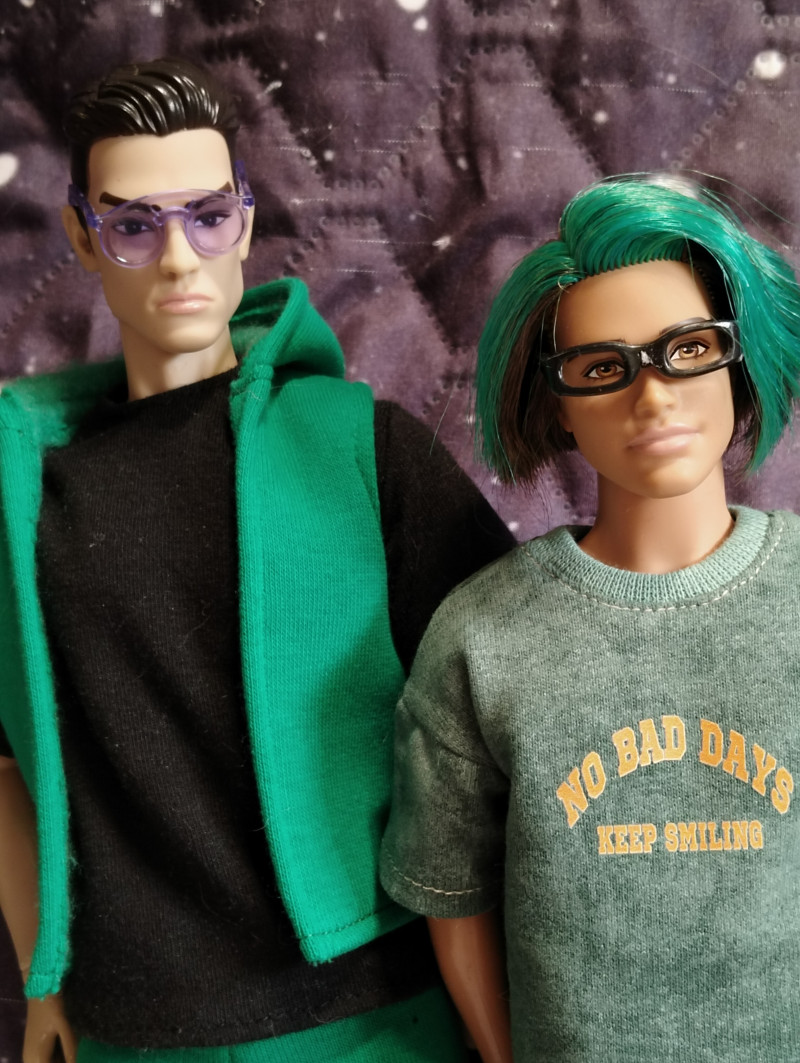 Красавчики. Зеленое им идет. У меня есть прозрачные кукольные очки с сильным плюсом, в которых глаза как блюдца. Надо будет надеть на кого-нить и поржать. 1 |