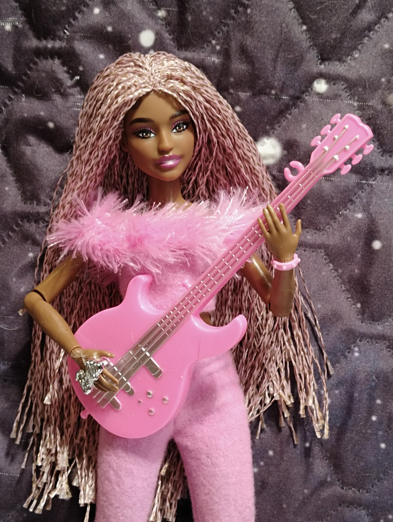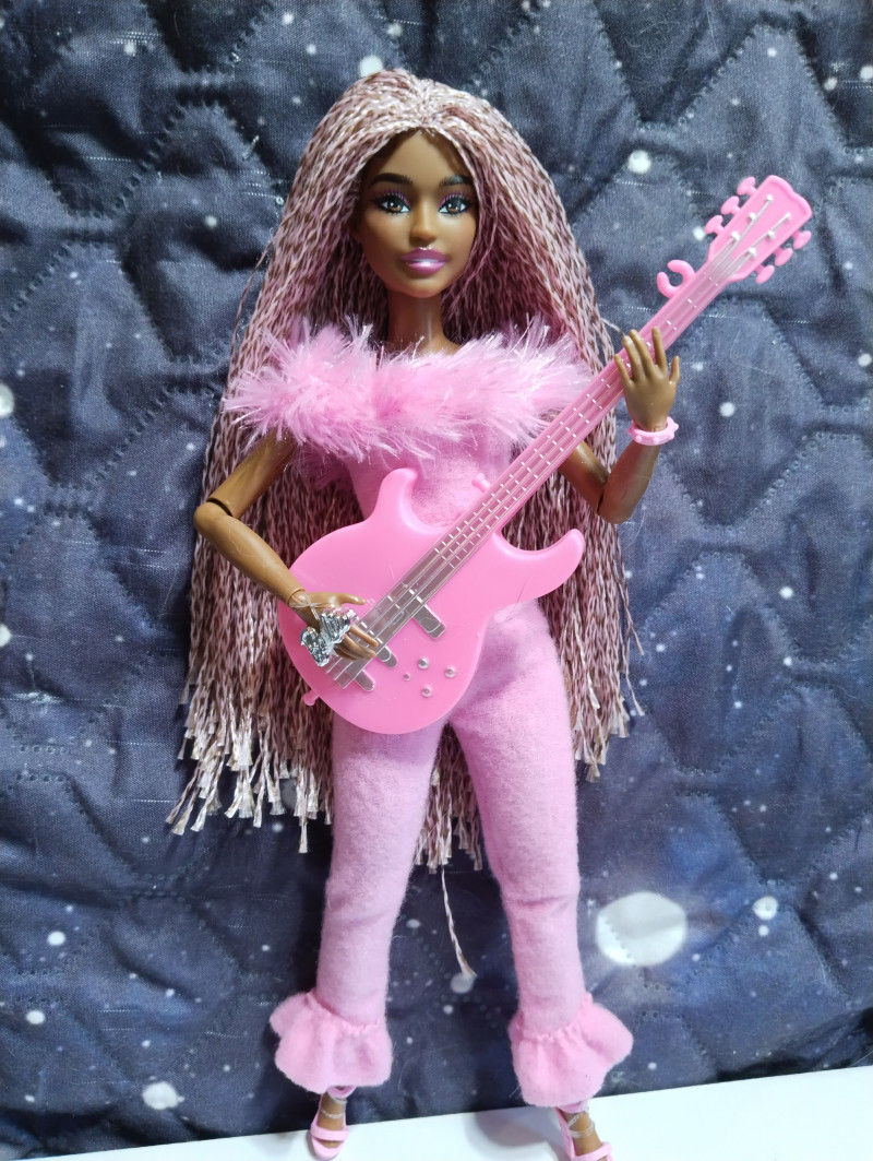 Цвет и дизайн гитары вызывают конечно некоторые вопросы к мальчику.