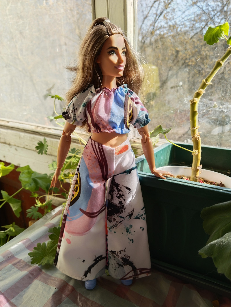 я стирала в теплой. Опасалась, что от горячей сядет. Вроде стал норм, но оставить его на кукле все равно не решусь, наверно. У меня нет кукол, которых не жалко. Все красотки, и стоят как моя жизнь. Уыыы. Надела топ на белый пластиковый тюбик с кремом – посмотрю, как будет себя вести. 2 |
