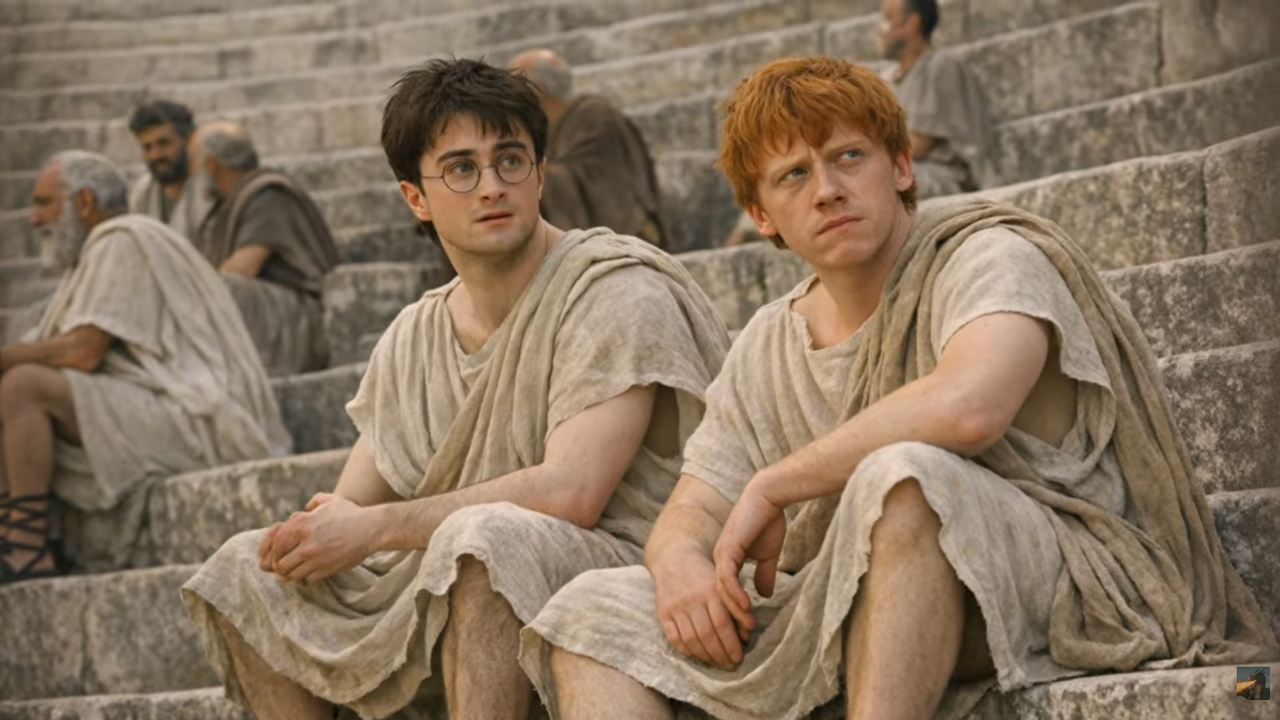 Еще нашла отличную версию: Гарри в Академии Древней Греции. Там вся компашка есть. Вот Хагрид — Диоген, а Гарри с Роном его слушают: https://youtu.be/_i8JtwDRLD4 ![]() 1 |