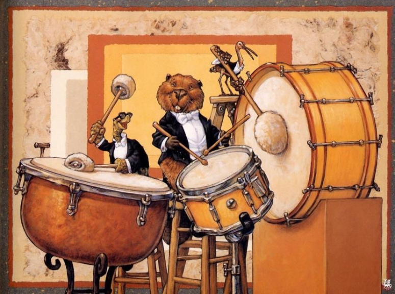 Одна из номинаций, «Грохот барабанов», посвящена ударным инструментам, и я, по своеобразной традиции, хочу рассказать о некоторых из них.. Момент появления на свет ударных инструментов теряется в глубине веков. Первый ударный инструмент родился, когда человек обнаружил, что стук камня о камень или палки о палку — это не только шум, но ещё и способ художественного воздействия на сознание человека. Даже собственные ладони тоже можно считать ударным инструментом! Ведь звук ударного инструмента получается благодаря удару одного предмета о другой. Однако бывает и иначе — звук также может рождаться благодаря трению или встряхиванию инструмента. Это очень большая группа музыкальных инструментов, и классифицировать их можно по разным параметрам. Один и тот же инструмент может принадлежать к нескольким группам. Например, ударные музыкальные инструменты классифицируют по высоте звучания, и инструменты подразделяются на имеющие определённую высоту звучания (то есть, те, которые могут быть настроены на определённые ноты звукоряда) и инструменты с неопределённой высотой звучания (то есть, те, которые не имеют настройки на определённые звуки). К первой группе относятся, например, литавры, ксилофон, вибрафон или колокольчики, ко второй — большой и малый барабаны, треугольник, тарелки, бубен, кастаньеты, гонг, африканские барабаны и другие инструменты. ![]() На некоторых сайтах утверждается, что при раскопках в Месопотамии были найдены одни из древнейших ударных инструментов — сделанные в виде маленьких цилиндров, происхождение которых датируется шестым тысячелетием до нашей эры. Также говорится, что корпус некоторых древних месопотамских барабанов представлял полую ракушку, на которую натягивали кожу. Барабаны появляются на территории Китая. Самые ранние экземпляры датируются относятся к неолитической культуре Давенкоу и датируются около 3500 лет д.н.э. На этих ритуальных барабанах использовалась кожа аллигатора. Кубкообразные барабаны, сделанные из рога и относящиеся к пазырыкской культуре были найдены на Алтае с датировкой около 500 лет до.н.э. Барабан в виде песочных часов изображен в росписях Топрак-кала, 3-6 вв. близ Хорезма. В средневековой Европе кубкообразный барабан впервые встречается на миниатюре в кантигах Альфонса Мудрого (1221-1284). Девушка держит его на плече в марокканской манере. В персидских миниатюрах он появляется с 19-го века и расположен уже на коленях. История колокола насчитывает более 4000 лет. Самые ранние (XXIII—XVII века до н. э.) из найденных колоколов имели небольшие размеры и были изготовлены в Китае. В Китае также впервые создали музыкальный инструмент из нескольких десятков колоколов. В Европе аналогичный музыкальный инструмент (карильон) появился почти на 2000 лет позднее. Самым ранним из известных колоколов Старого Света на данный момент является ассирийский колокольчик, хранящийся в Британском музее и датируемый IX веком до н. э. ![]() Символом культуры Донгшон (доисторическая археологическая культура азиатского бронзового века) стали бронзовые барабаны с характерным геометрическим узором, сценами народной жизни и изображениями тотемных животных. Барабаны выполняли не только музыкальные, но и ритуальные функции. И это далеко не все существующие музыкальные инструменты этой группы, которые вы можете использ