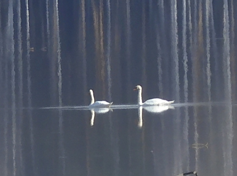Кулики травники в полете и лебеди-шипуны.