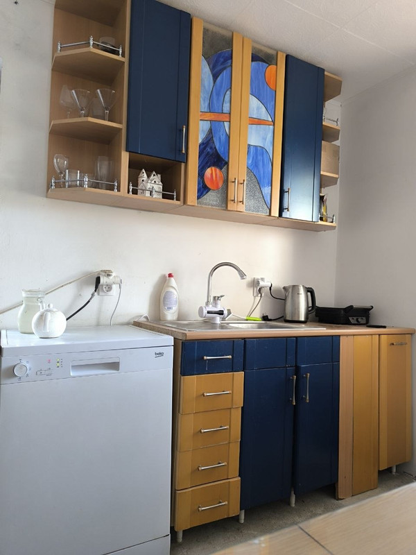 Кухня очень красивая. И спальня. А линолеум - это моя боль! Лежит рулончиком в комнате.