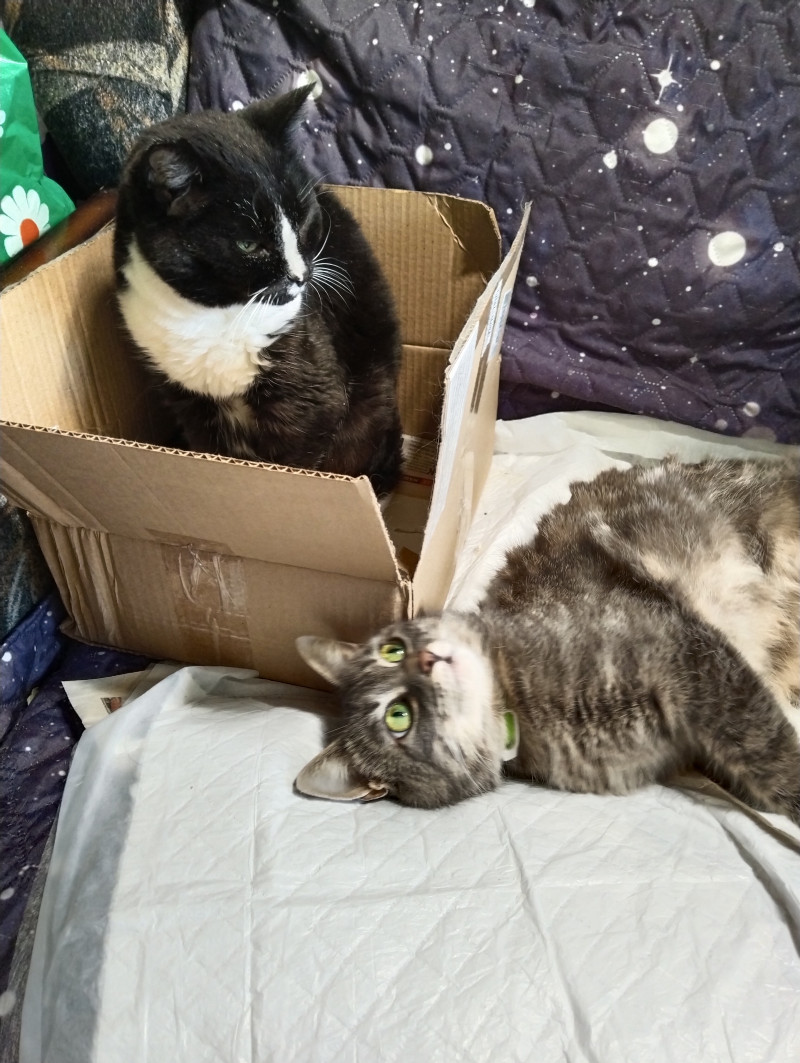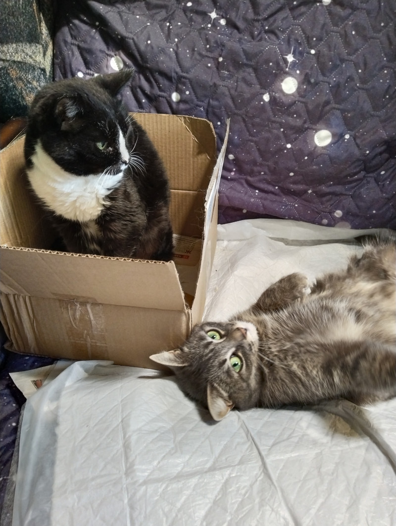 Тася сидит в коробочке и держит последний рубеж (коробочку Маруся тоже примеряет под свою жоппу).