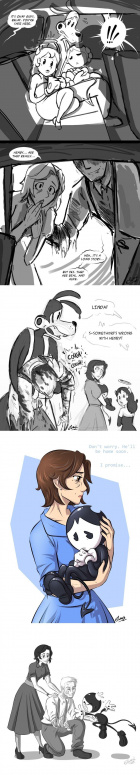 — Генри! Давай скорей! Я хочу поскорее всё увидеть! — тормошил друга Бенди, отвлекая от кропотливого дела. Генри возился с замком, пытаясь вскрыть его.
