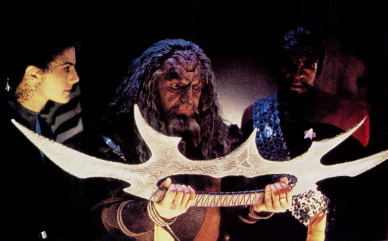 Один из клингонов выступил вперёд, и она с лёгким разочарованием на него посмотрела. Инопланетные выражения лиц она читала неважно, но этот вроде бы выглядел чуточку напуганным. И правильно! Он был ей по пояс и держал штуковину с лезвием, да ещё, похоже, из металла, подумать только. Хорошо бы хотя бы острая. Иначе разочарования было бы больше вдвойне.