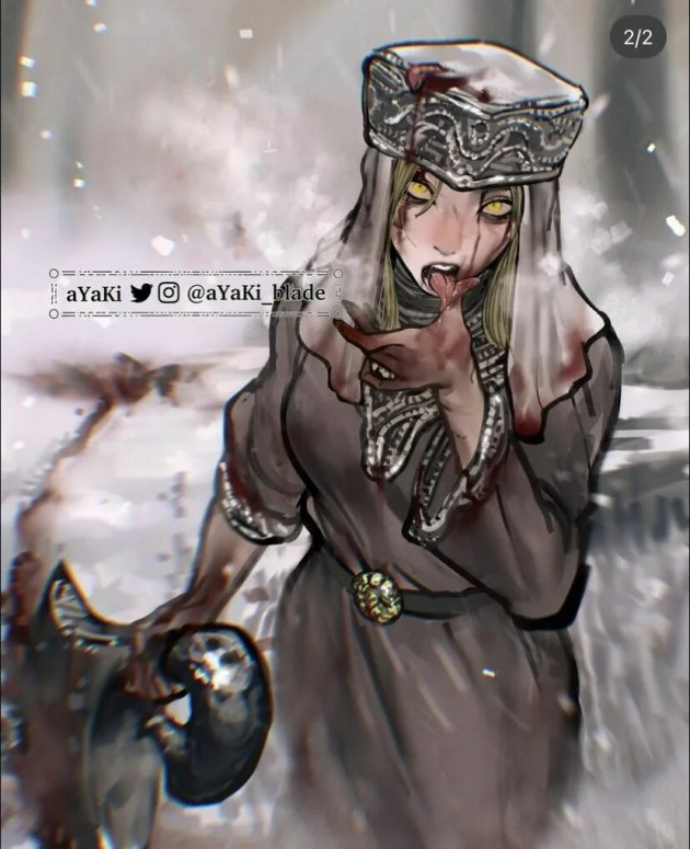 «Хм? О, она. Тоже сука. Не ест людей. Ввалилась, сказала, что она какой-то… кейп, кажется? Какой-то титул с родины. Уродина. Едва ли приличная лучница, и не ест тех, кого убивает. Все эти жаркие разговоры о «новом мире, который они могли бы поглотить вместе», фу.»