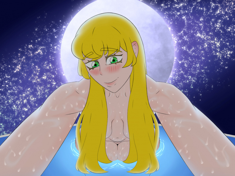 Она тут же скрыла дрожь, опустив руки к бокам и принявшись развязывать верёвочки на трусиках. Они поддались, и Лиза вынула нижнюю часть бикини из воды, демонстративно держа её так, чтобы он видел. Жон следил за той, как пёс за костью, что её, похоже, забавляло. Затем... лёгкий бросок через плечо, и ткань улетела из виду, оставив Лизу в бассейне с ним по-настоящему, полностью обнажённой.