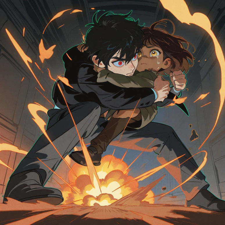 Ударной волной Кроу прижало обратно к Эмбер, что защитило её от сильного жара, созданного взрывом, и летящих осколков плитки и бетона. Здоровенные каменные обломки прилетели ему в спину, но из-за силы взрыва большая их часть улетела дальше, что спасло их от погребения. Не подними он ауру, то помер бы, попав под ударную волну.
