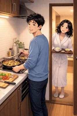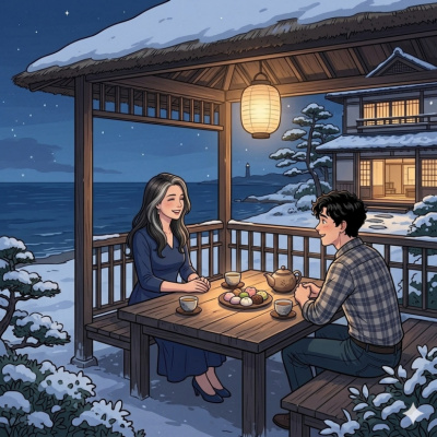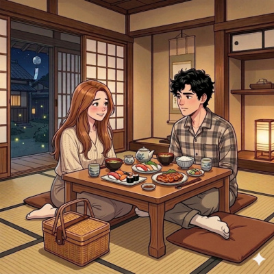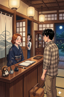 Коширо и Селена, когда девушка просит его вернуться в гостиницу