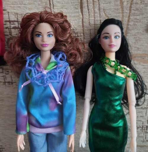 Сделала кукле Луизе нарядный блестящий пояс, а Натали - простые бусики. [url=https://ibb.co/cXpR7mYF][img] [/img][/url]Показать полностью