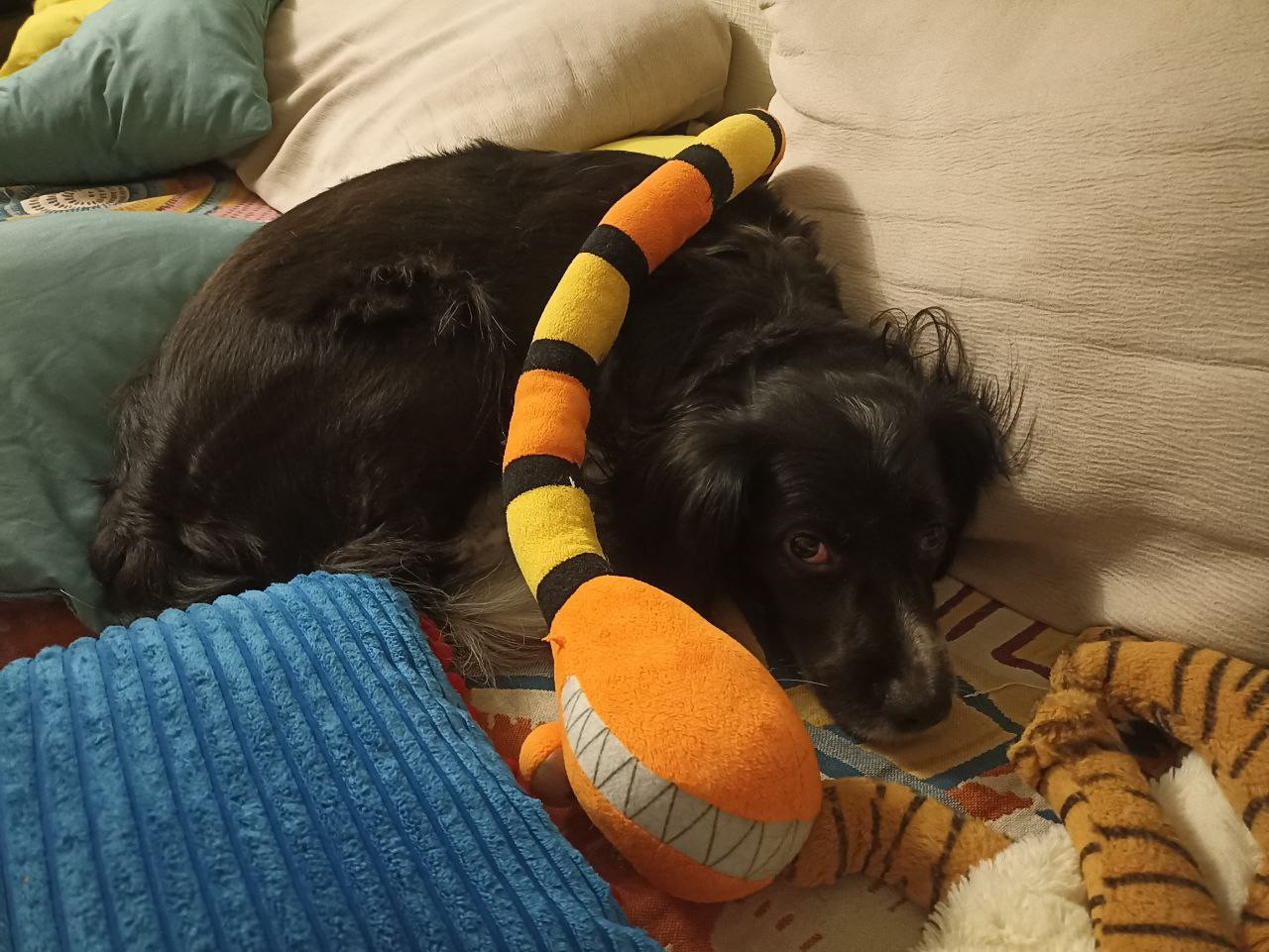 Холодно. Может, игрушечная змея сможет согреть?.. ![]() А ещё Жуля вырастила себе шерстяные носочки. Показать полностью