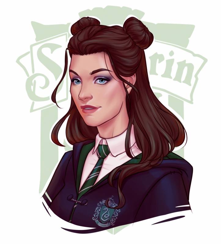 Я 100% Хаффплафф, но стоит попытаться представить себя в образе из Поттерианы, как сам собой рисуется Слизерин (чисто внешне, конечно). А вообще, вышло скорее похоже на Панси Паркинсон.