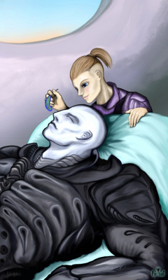 Нарисовался спонтанно, пока без имени и вовсе без судьбы. Авось куда-нибудь приткну :) в планетарную оборону, наверное. Злой... Наверное, на Планете-4 у него кто-то был.