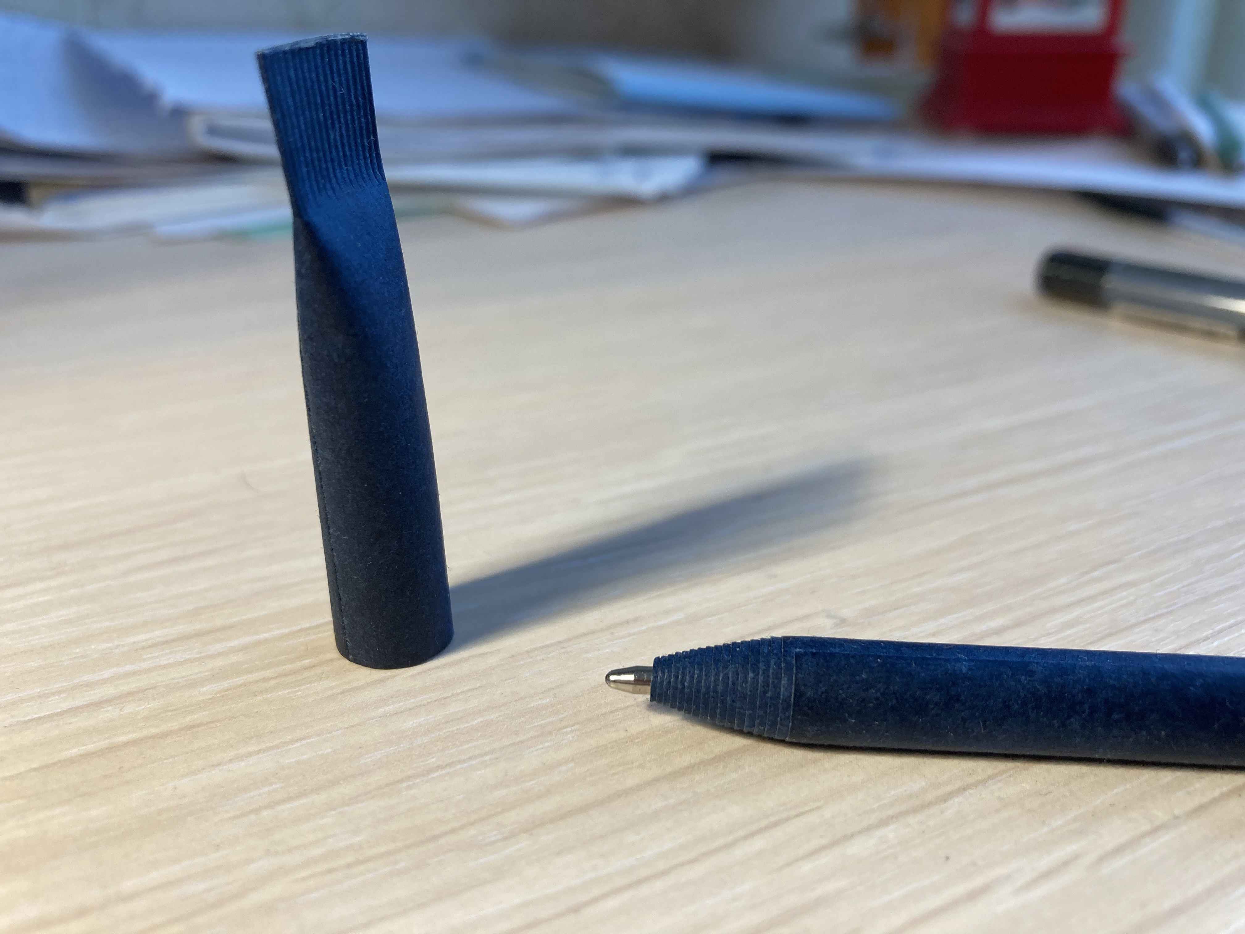 Любимый родной вуз оделил меня модной-экологичной ручкой, в которой не из бумаги только стержень. Корпус - крученый цилиндр, колпачок - такой же цилиндр, сплющенный с одного конца. Пока решала задачу, машинально вертела в руках колпачок. В итоге - длинный порез в весьма неудобном месте ладони 🤣 Честное слово, я так однажды убьюсь 6 |