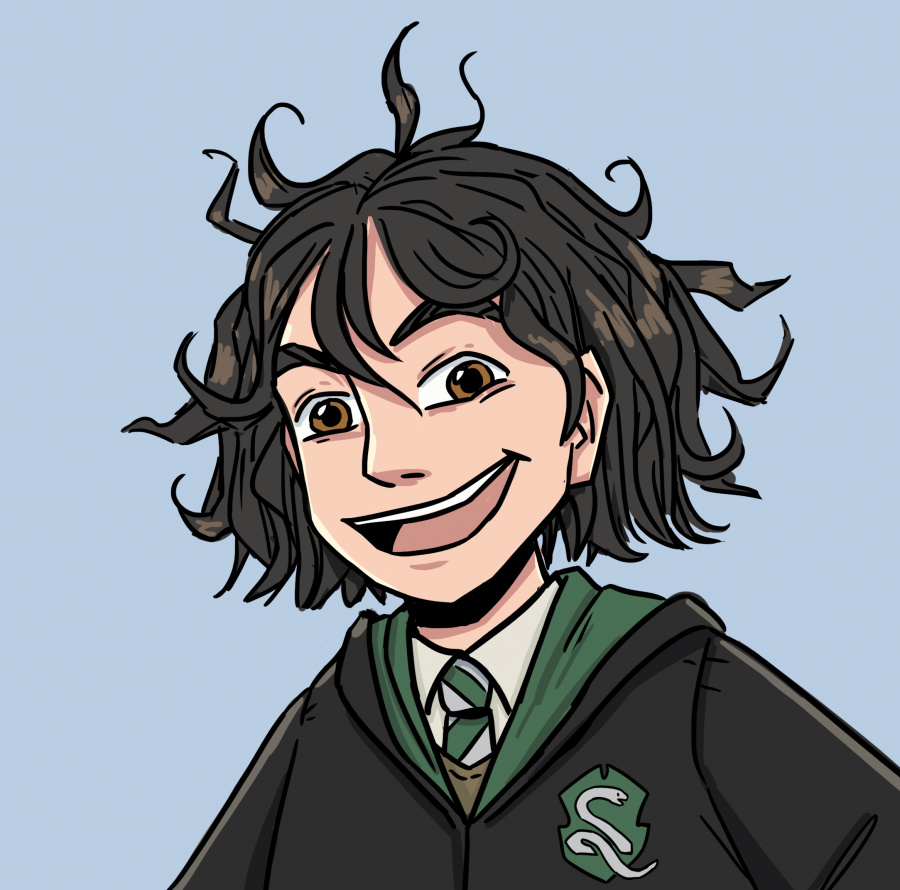 Дора (второй курс) подглядывает за Джеймсом (третий курс) во время урока защиты от тёмных искусств. Она впечатлена.